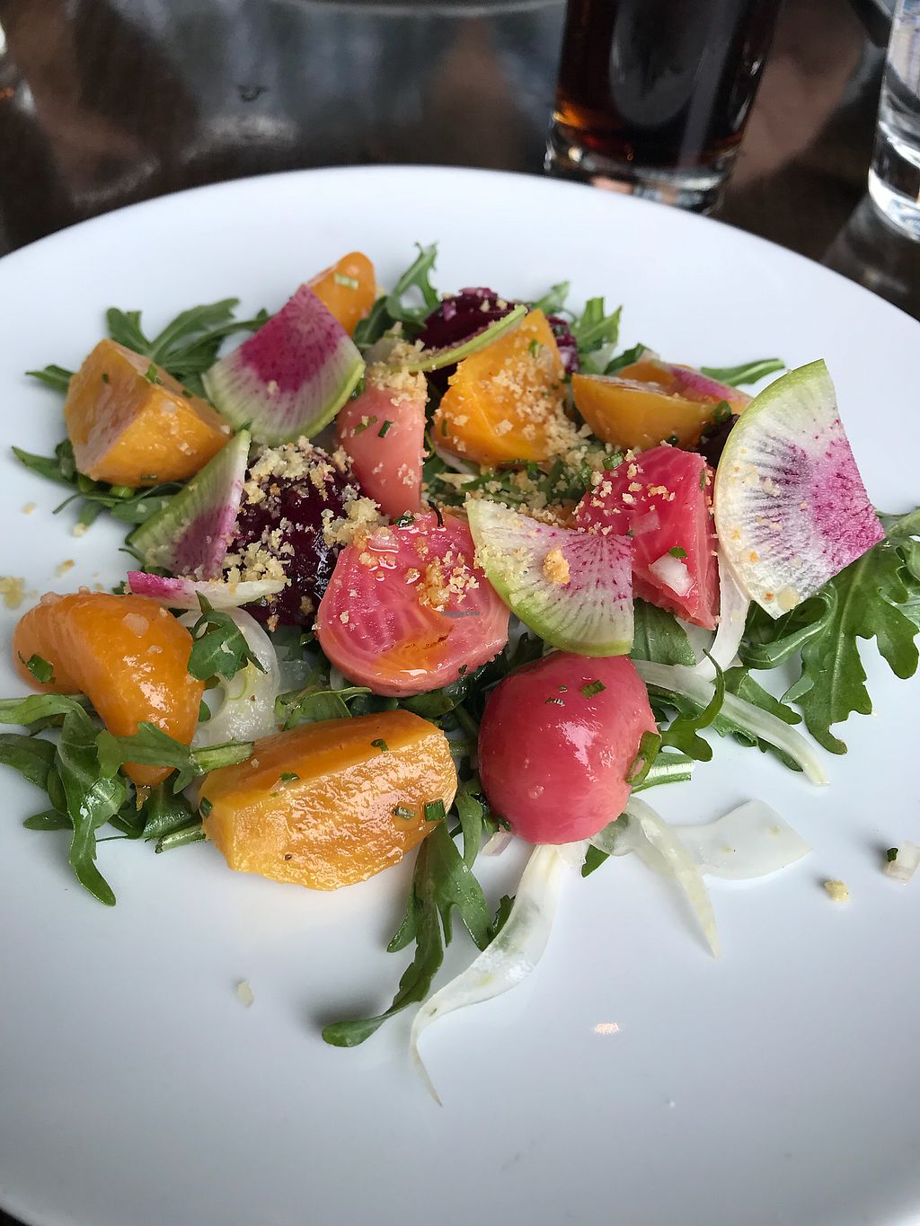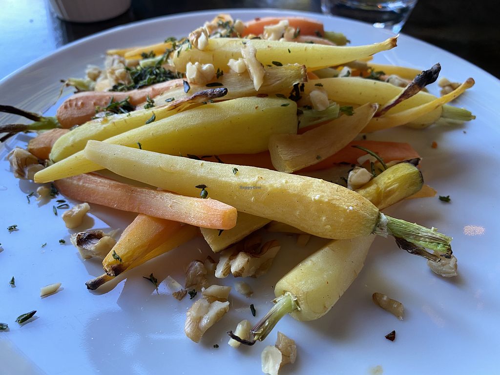 A relative recently moved to Yountville & I've grown to dislike my visits because every single restaurant seems to be over-flowing with excessive amounts of butter, cream, cheese & meat. A town of gluttony. I was pleased to find a restaurant where I could order the cheese-free salad & cheese-free pizza directly off the menu as is without making a big deal about being a vegan or special ordering. I now have a renewed interest in Yountville because when you can find a meal that you can actually eat, it helps me understand the tourist draw to the town because the flavors and food were very delicious. Reasonably priced for this town with a great atmosphere & sense of interior design style. Excellent service. Outdoor seating for sunny days as well.