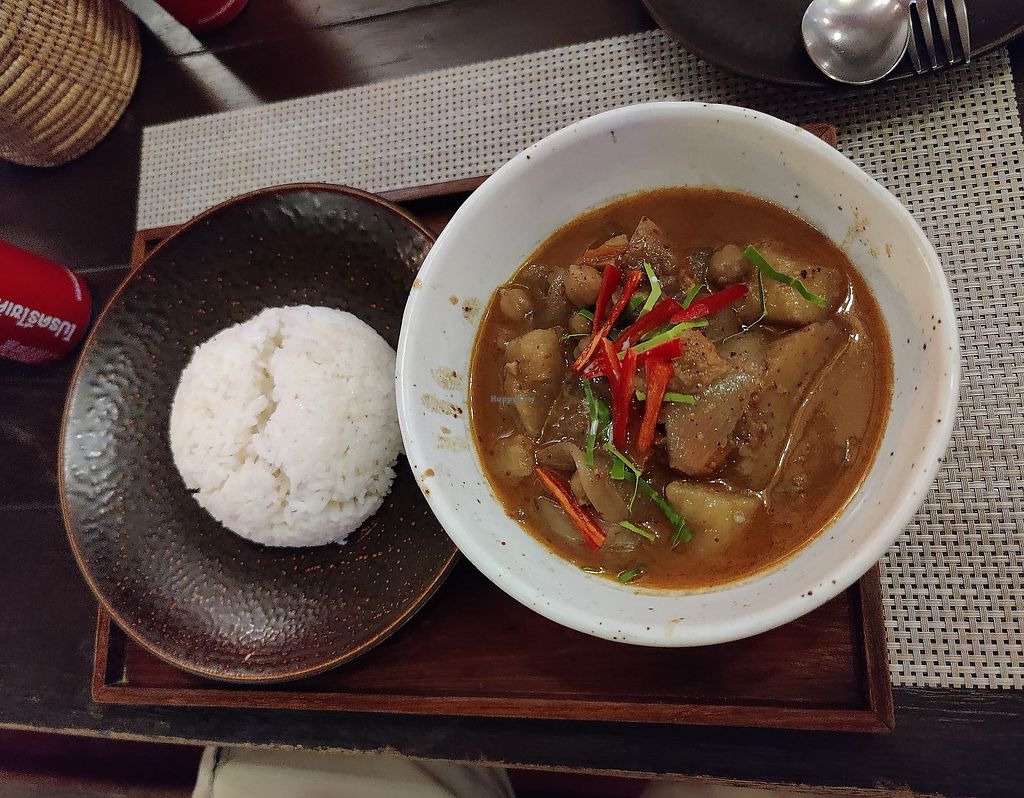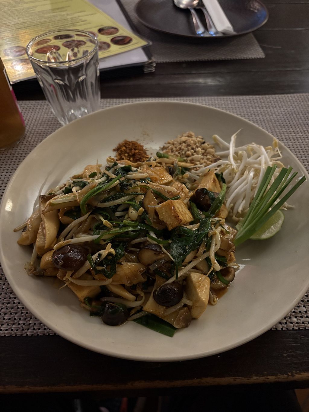 Had the papaya salad and the Khao Soi. Both very good quality. 100% vegetarian cafe with a lovely garden