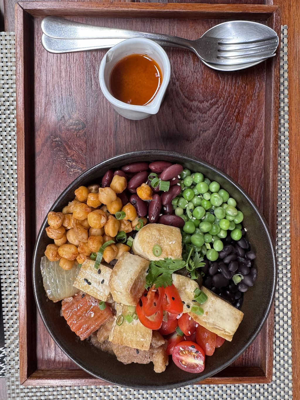 A really great restaurant with a very similar menu to GoodSouls. There’s a cool bar with great alcoholic cocktails and mocktails which was great to see. Very lively atmosphere and it’s linked to a hotel as well. The falafel bowl and Khao Soi were amazing and the chocolate cake is brilliant!
