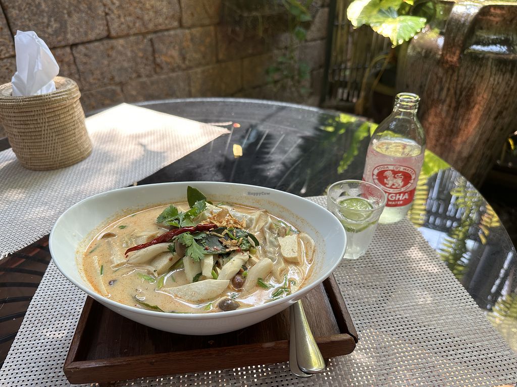 Had the papaya salad and the Khao Soi. Both very good quality. 100% vegetarian cafe with a lovely garden