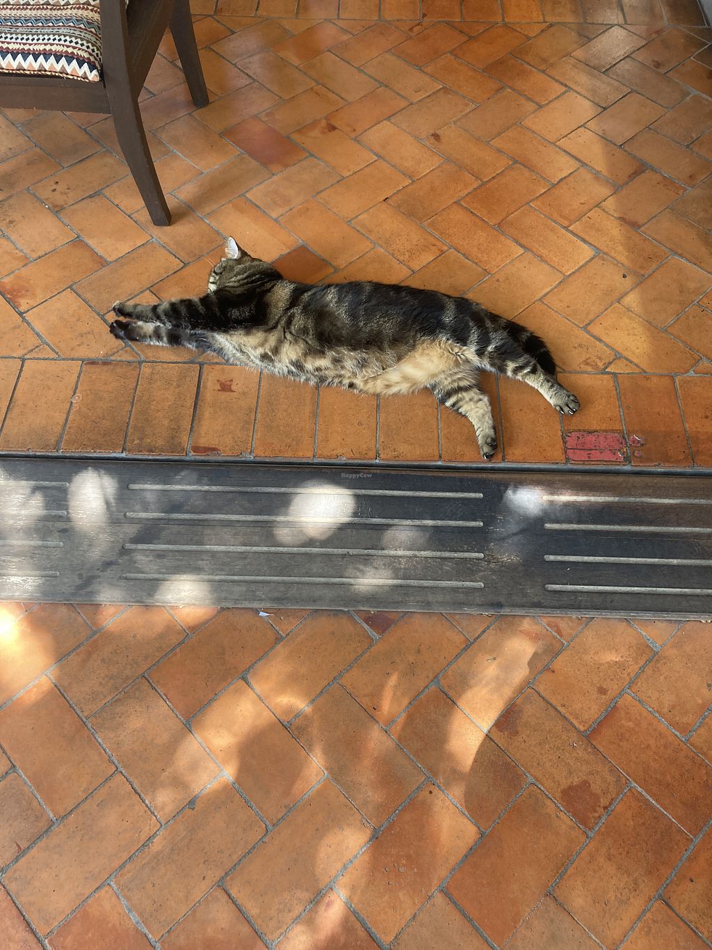 Pros: Great food with generous portions , Nice out door seating, Cutest fat cat
