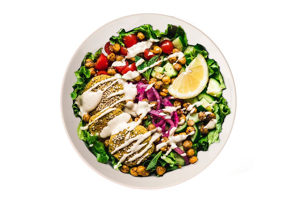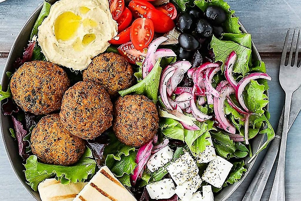 Little Traveler Salad (V) Baked Falafel, garlic hummus, parsley, vegan…