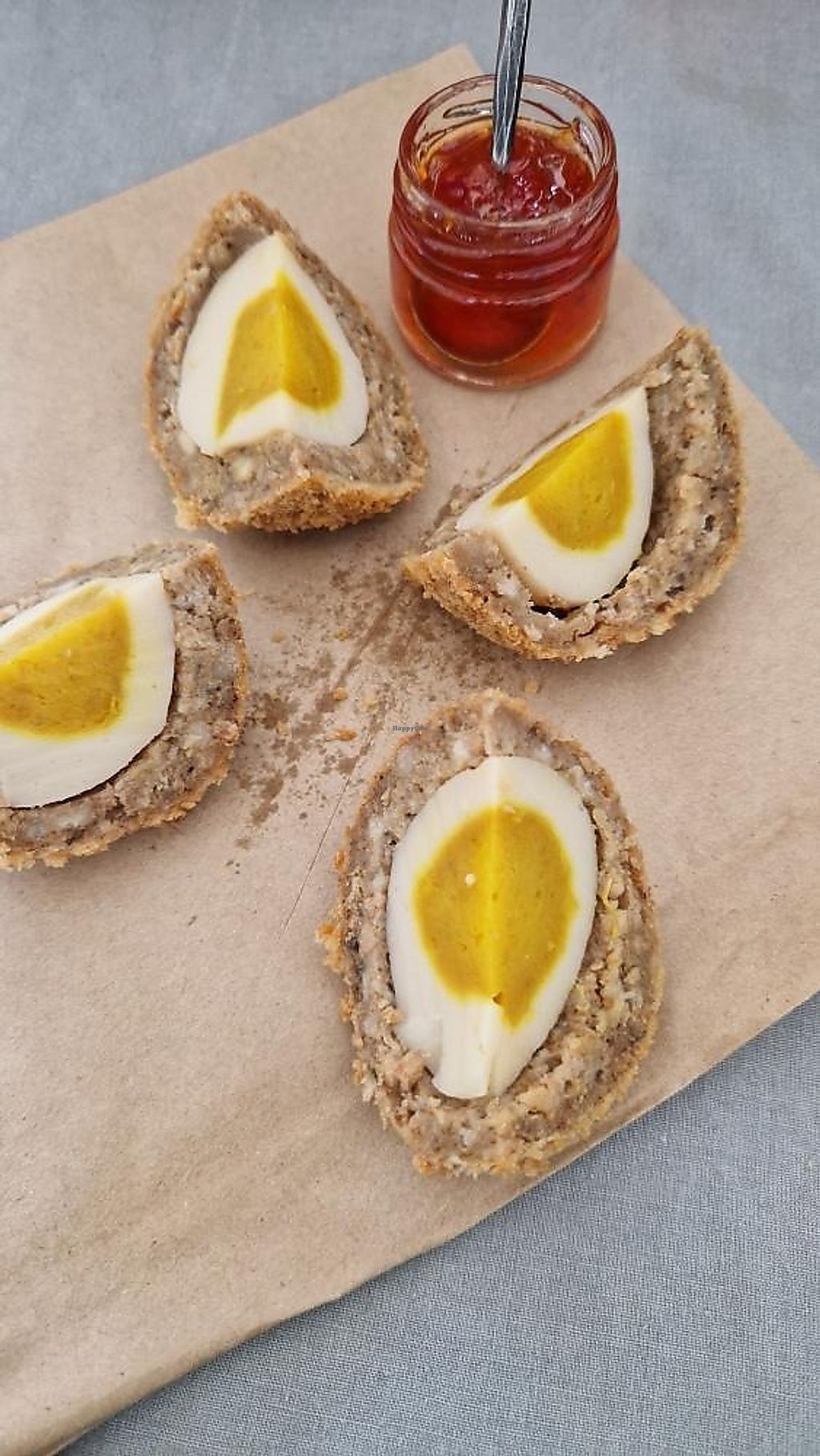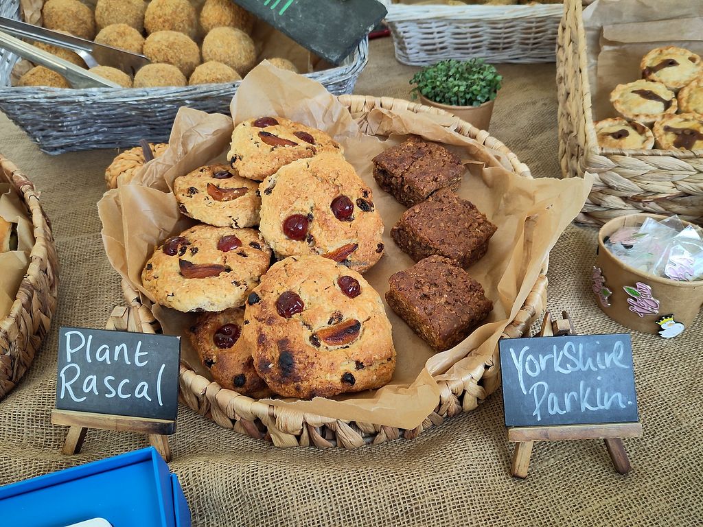 Fully vegan regular food stall serving freshly made savory & sweet ready to eat food. Includes a wide variety of scotch eggs, pies, sausage rolls and traditional cakes. Relocated from Hebden Bridge. Contact on WhatsApp for postal delivery. Open Sun 11:00-16:00. 2nd & 4th Sun. of every month only.