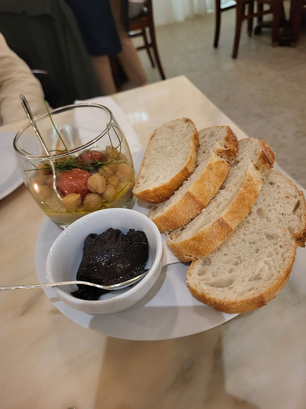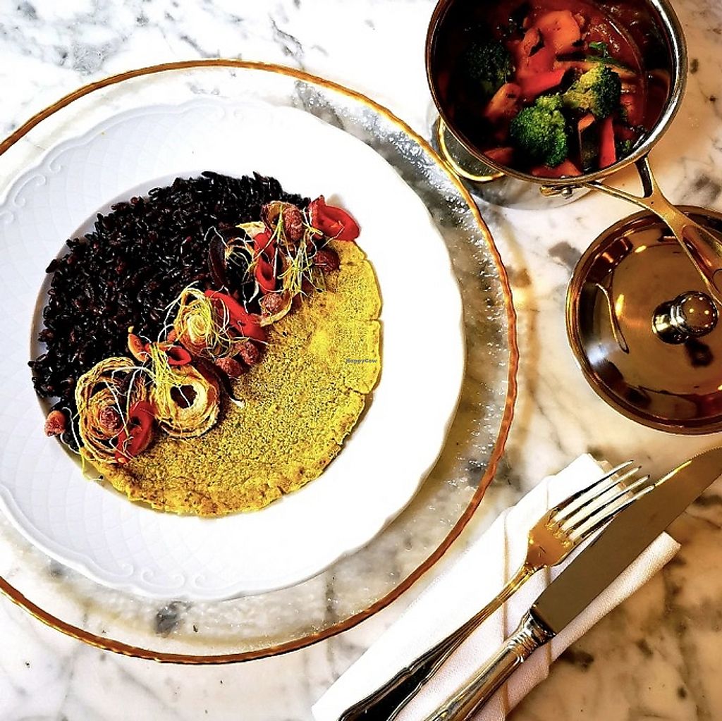 Red lentils curry and flatbread, black rice, pickled chilies and parac…