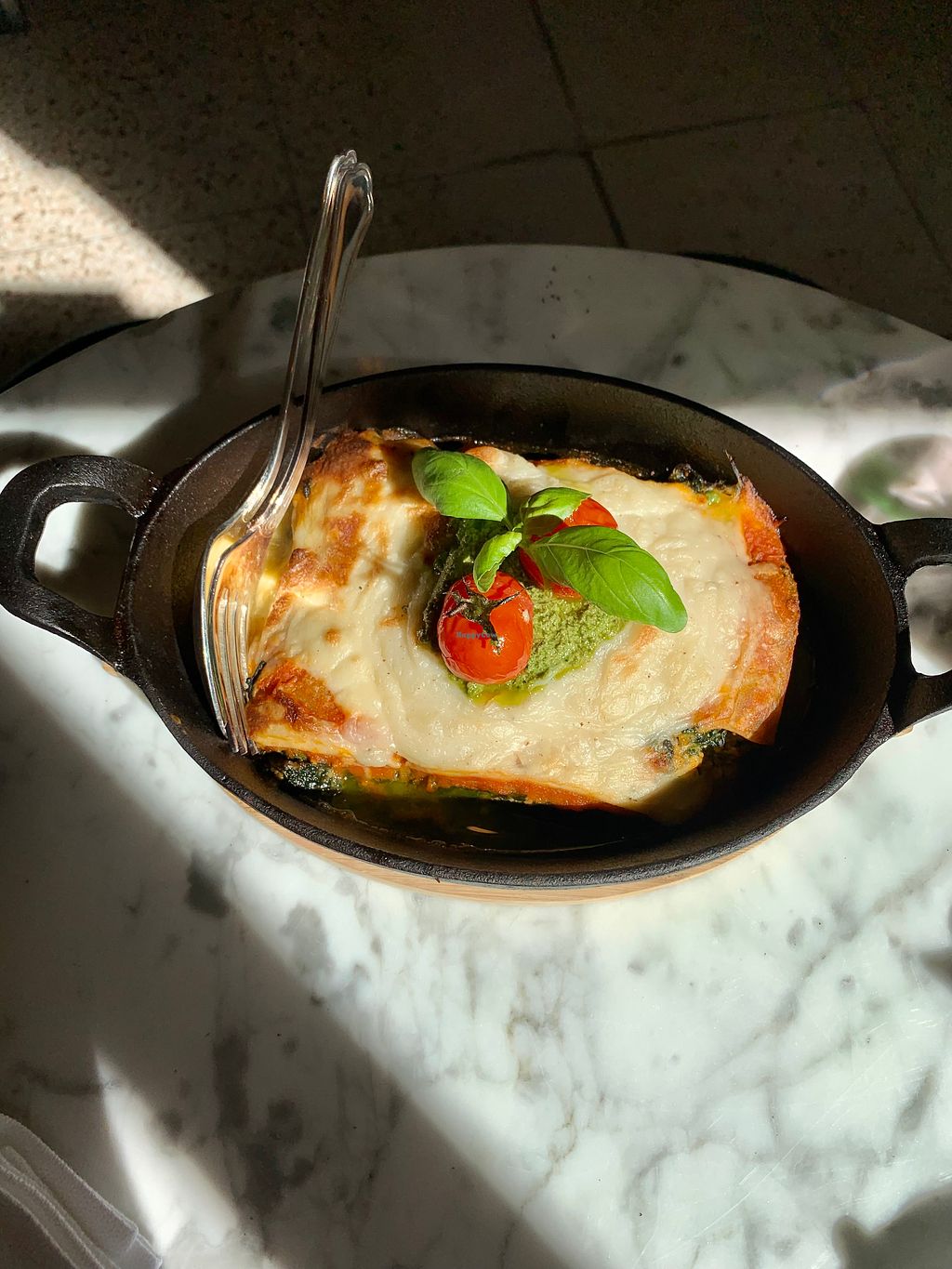 Tasteful lasagna, the best vegan lasagna we ever ate.