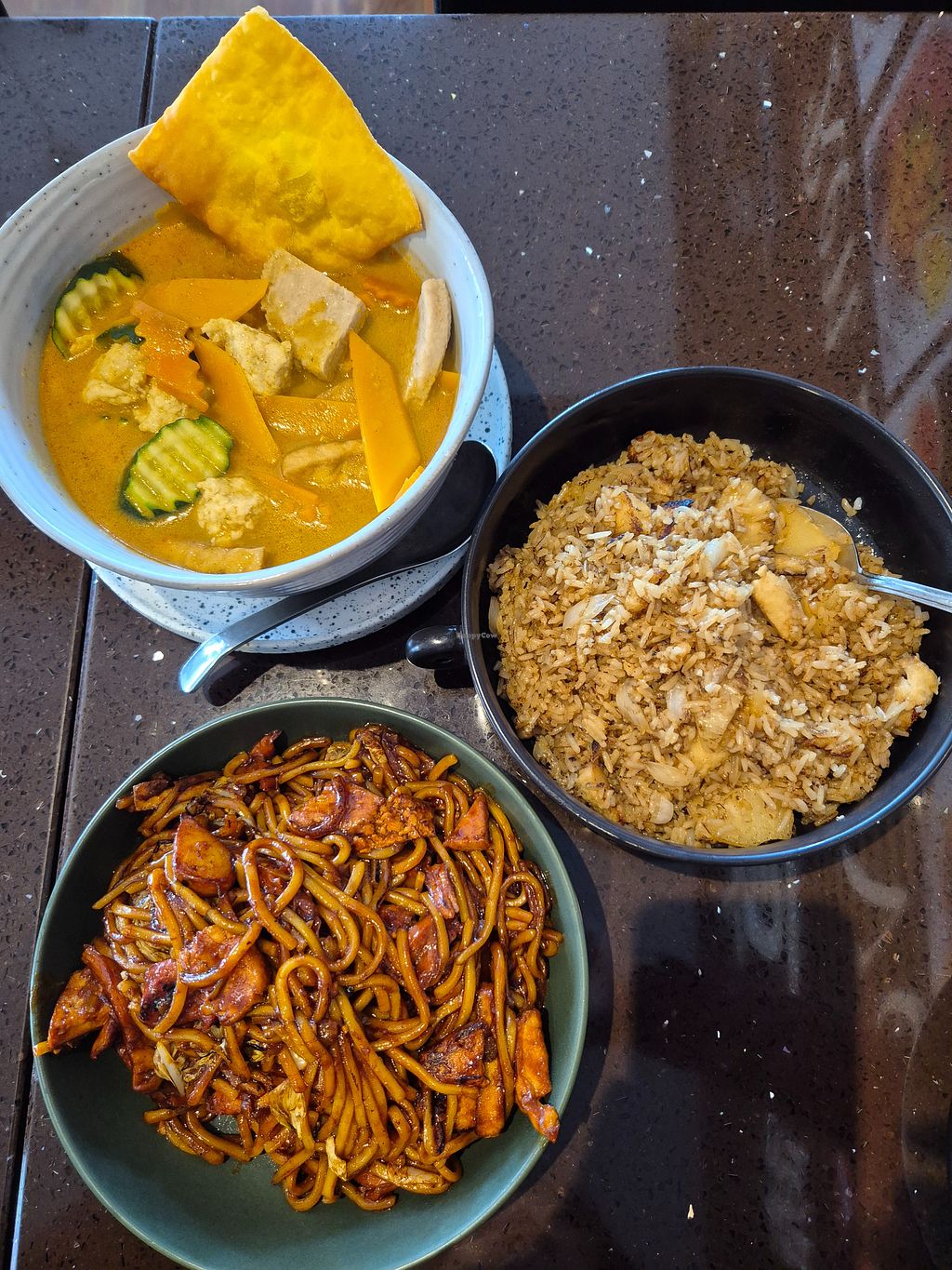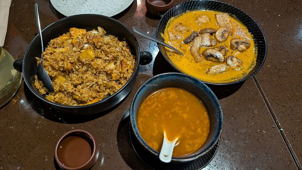 Curry laksa $15: v.nice +creamy, not spicy; Thai fried rice (chikn+ pi…