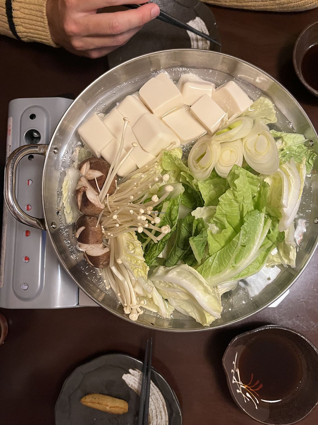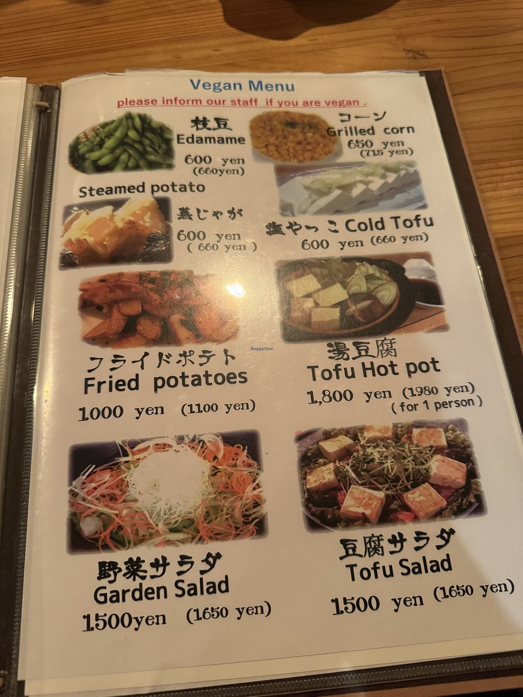 If you keep flipping the menu pages you’ll find the vegan menu that lists vegan options. Make sure to order off it since some of the dishes have non-vegan ingredients removed. The service was very attentive and asked about shared oil (used for the fries). The tofu hot pot was good. Note, if you’re with a bigger party make sure to make reservations because the restaurant is very small.