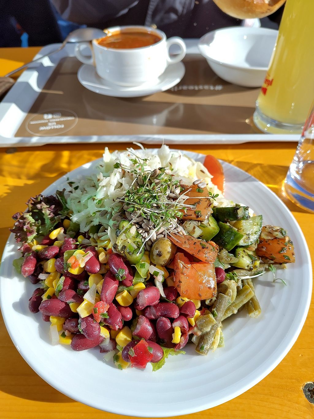 Serves meat, vegan options available. Situated at the top of the Rendlbahn ski lift station (the only place in this area of the ski resort serving food). Has a hot and cold buffet section where you can help yourself to food or ask for help from the knowledgeable staff who will guide you to the vegan choices. When the weather is good, you can sit outside with views of the valley. Open Mon-Sun 09:00-16:30. Open Ski Resort times, so please check with them.
