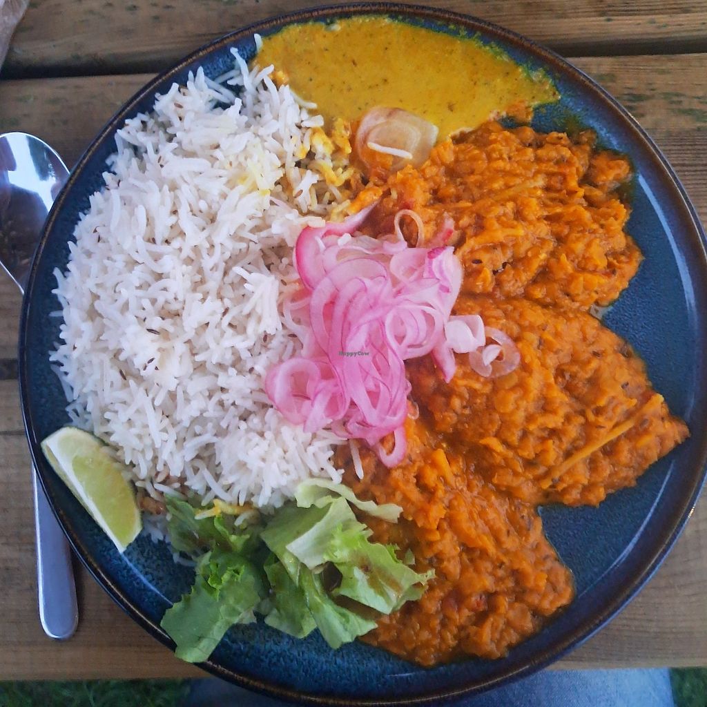 Very friendly people, more than willing to veganize their vegetarian option. We had Dal and Eggplant curry. Very tasty. Nice outdoor sittings