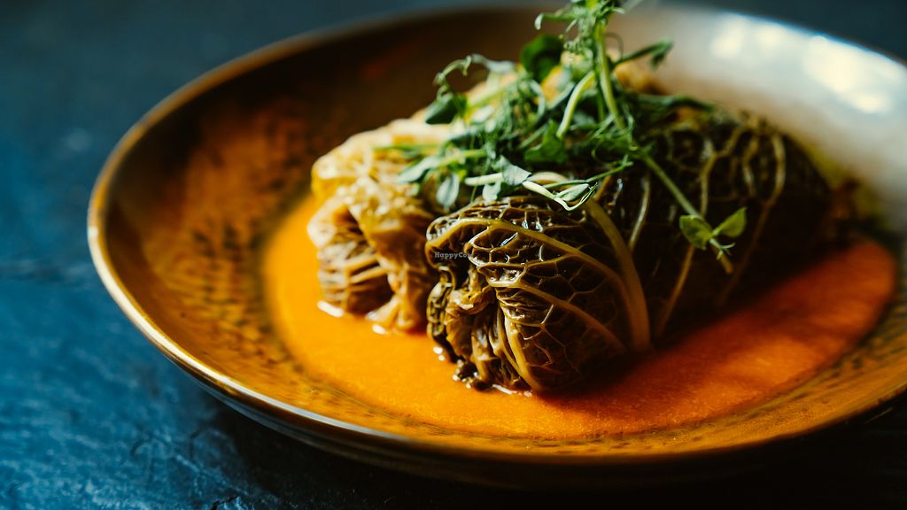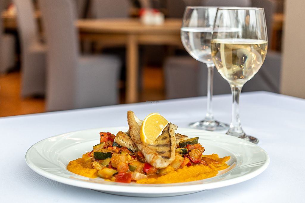 Serves meat, vegan options available. Hotel restaurant offering clearly marked vegan dishes such as marinated watermelon salad with plant feta, minestrone soup, stuffed cabbage leaves with buckwheat, sorbet and more. Open Mon-Sun 13:00-21:00.