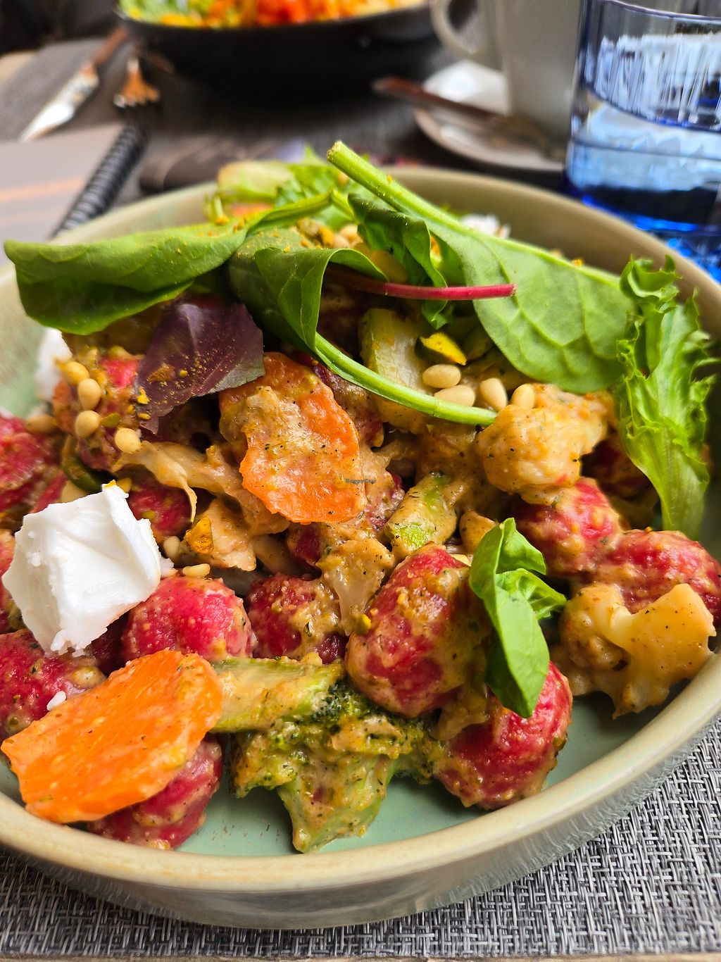 Die vegane Auswahl ist wirklich top und deswegen hatte ich zunächst große Vorfreude. Außerdem ist das Konzept echt klasse, da vieles regional sein soll. Leider war die Portion am Ende sehr klein und absolut ungesalzen. Mit Salz war es jedoch dann sehr schmackhaft, aber trotzdem nicht 26 Euro gerechtfertigt..Als erwachsener Mensch braucht man davon mindestens zwei Portionen und das sage ich als eine normalgewichtige, unterdurchschnittliche große Frau. Es kommt nur an den Sättigungsfaktor einer Vorspeise heran.