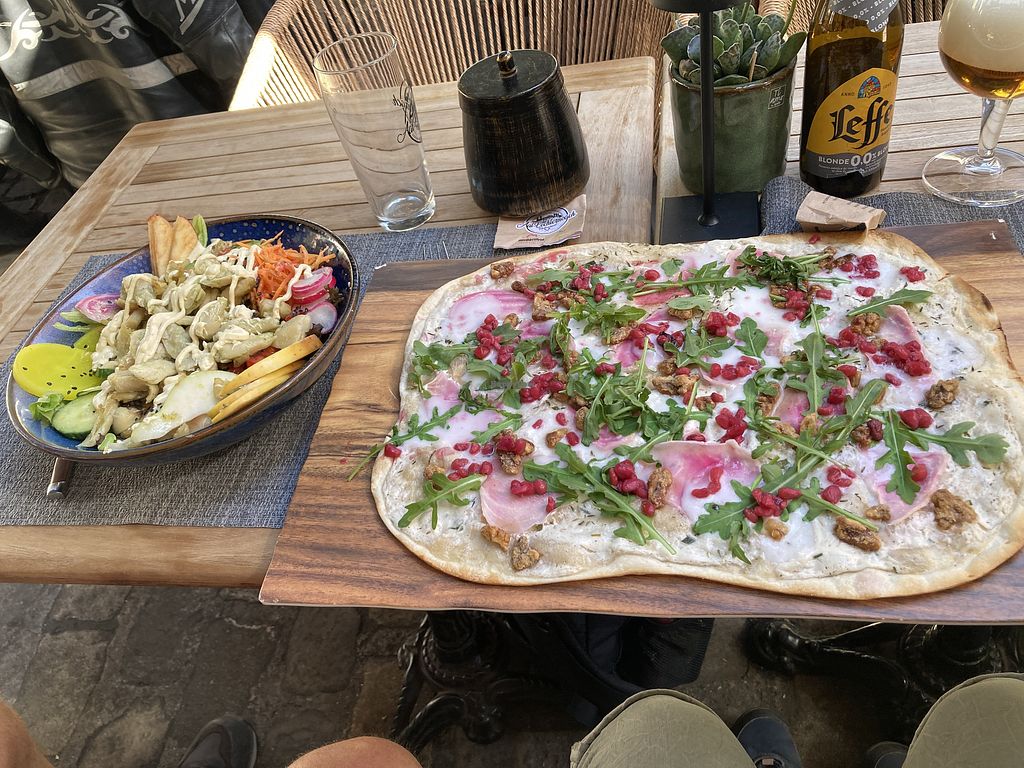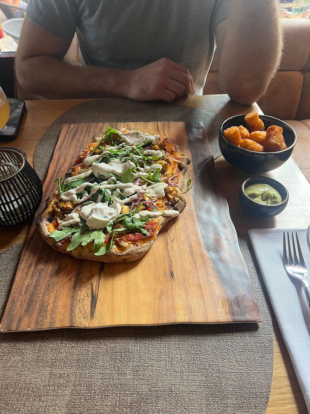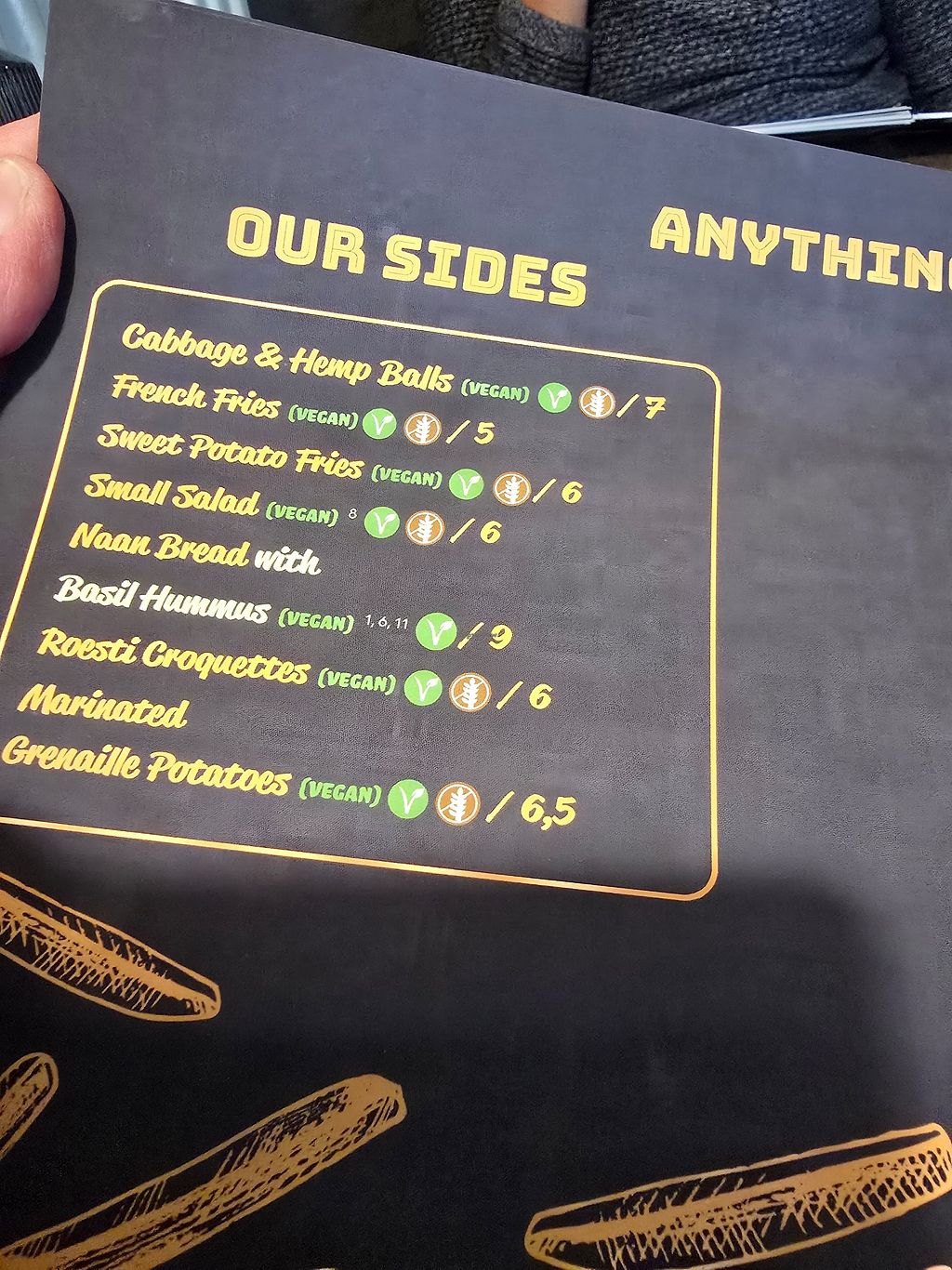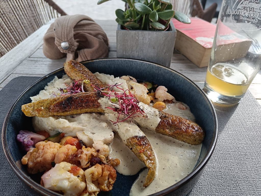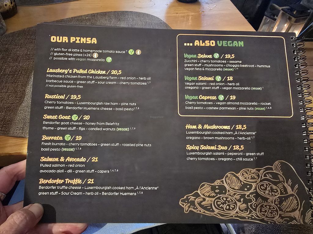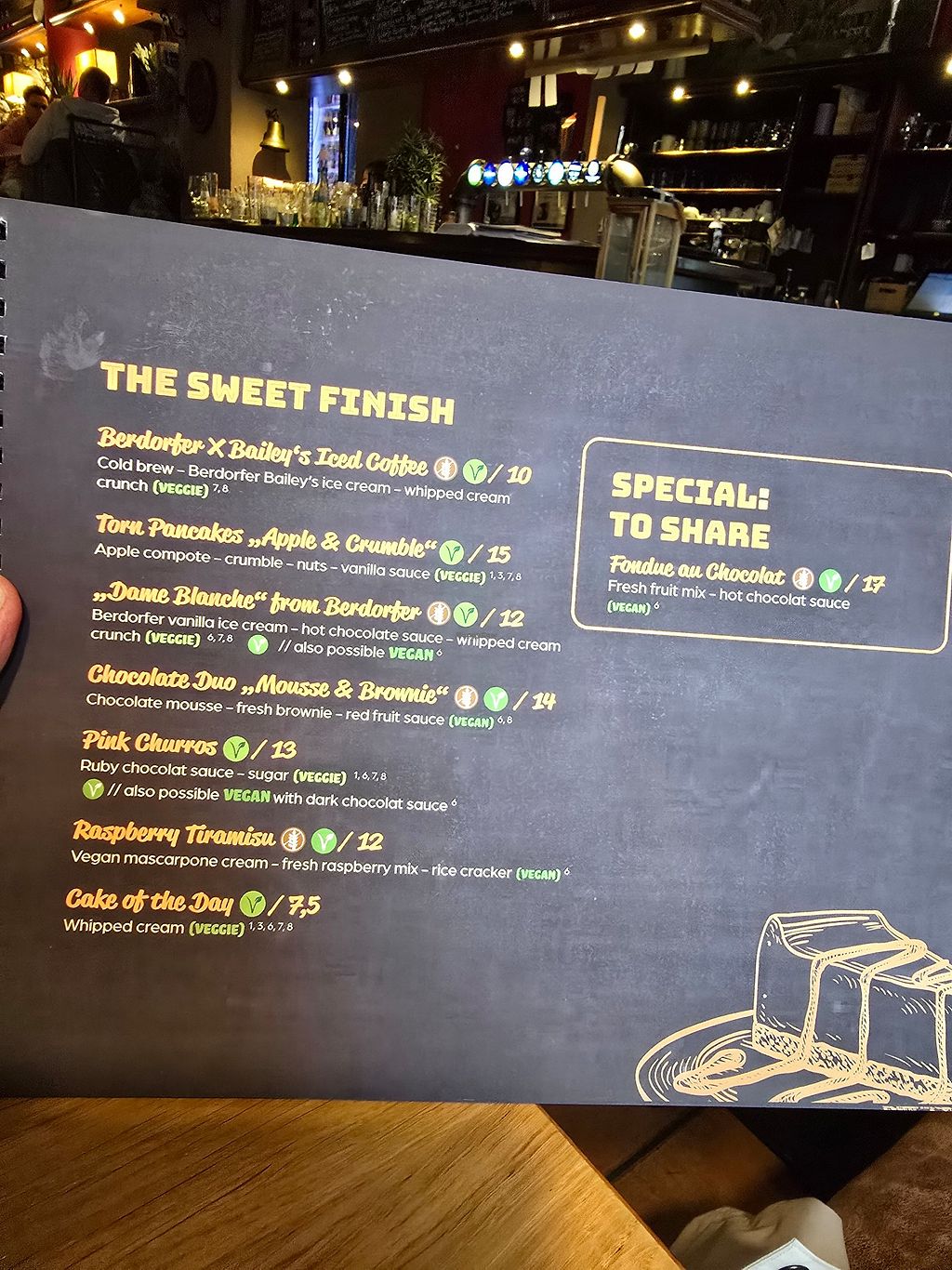 Veel Vegan opties die duidelijk worden weergegeven op de kaart. Wij hebben hier drie keer gegeten, ondanks dat het plan was om er één keer te eten. Het was ZO lekker. Wij hebben de pinsa (pizza) gegeten en dit was echt de lekkerste pizza ooit. De andere dag zijn we voor de schnitzel en de worstjes gegaan. Ook al zo heerlijk. Echt een aanrader!