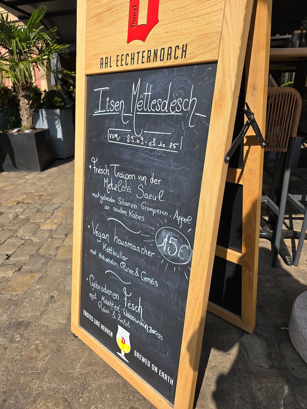 When I visited there was a large cycling event on so they were extremely busy and I couldn't get a table at first, after exploring lovely Echternach for an hour then waitress got me a spot and provided great service despite being super busy