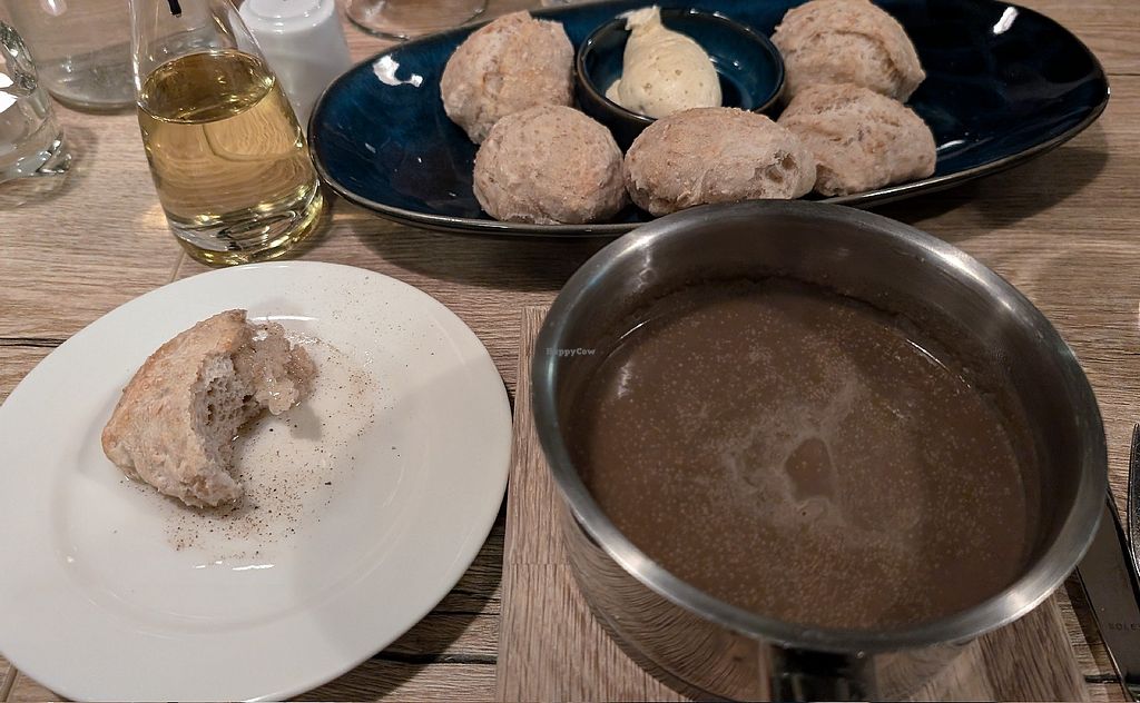 Wild mushroom soup and bread (they brought olive oil for us instead of…