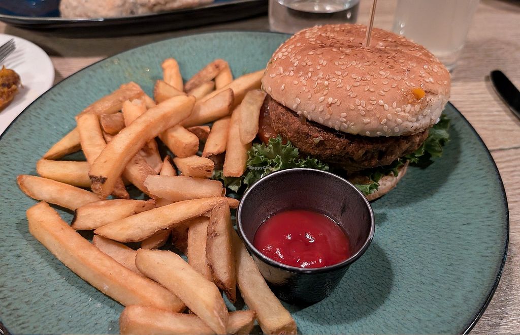 Vegan burger and fries (decent option, filling, less expensive than ce…