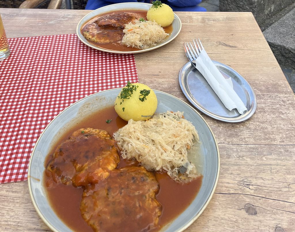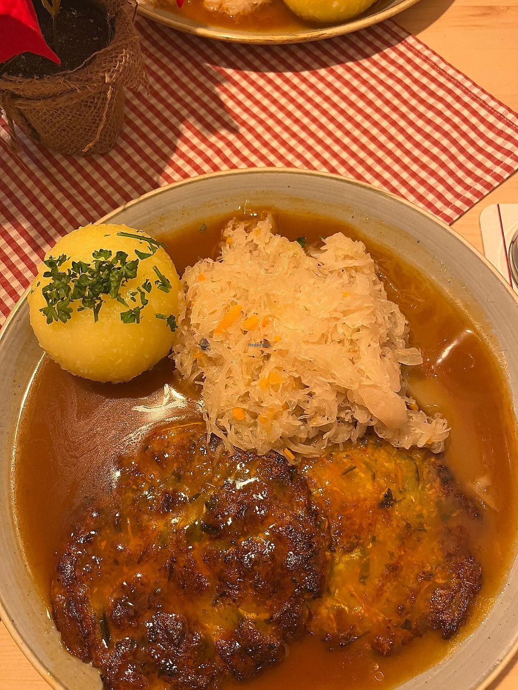 Excellent - May it be an inspiration for all Bavarian restaurants. Dumplings with Sauerkraut and homemade vegetable patties and sauce. Simple and delicious. All you need is to order two dumplings.