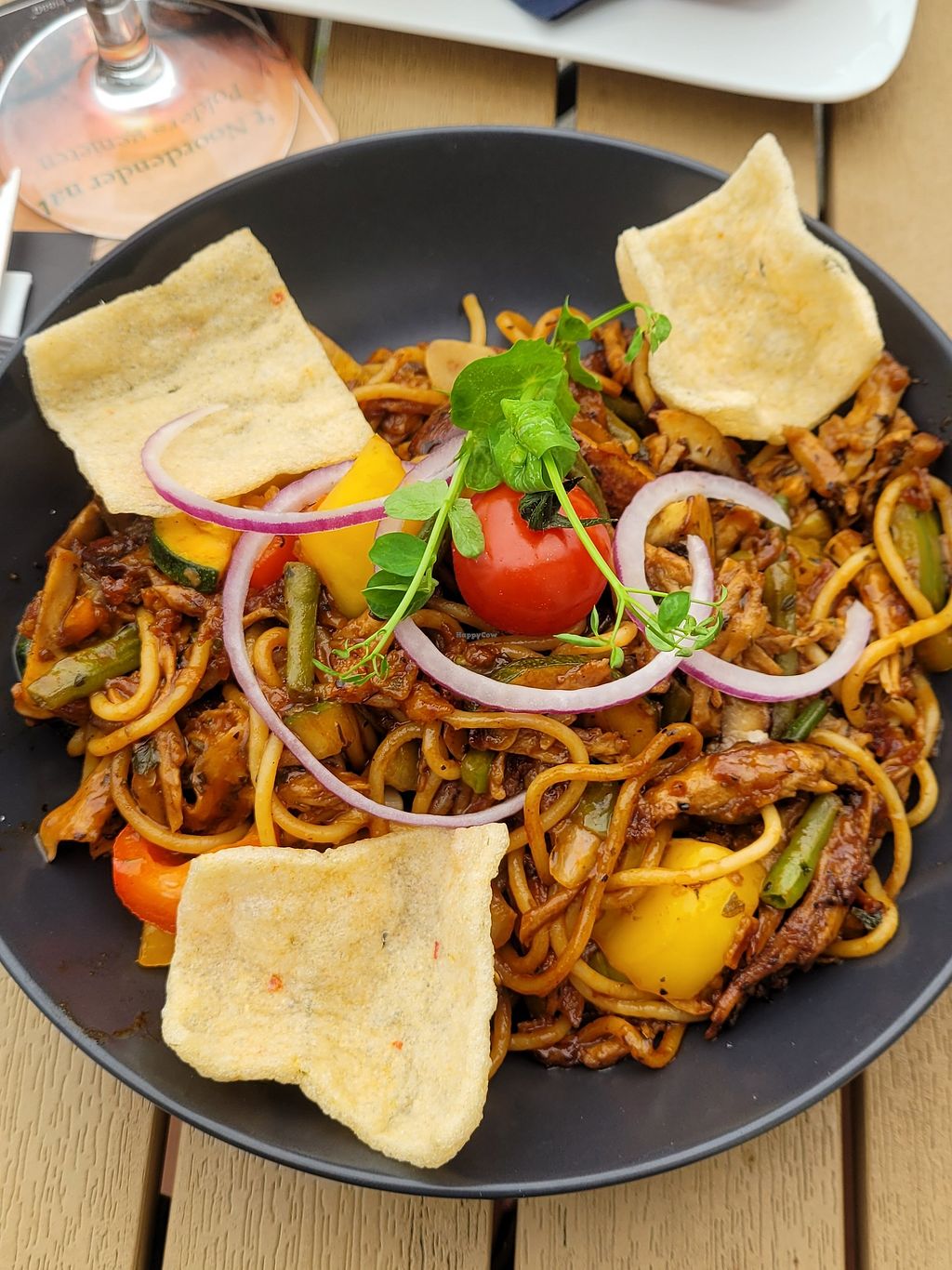 Hier gab es 2 komplett vegane Optionen. Eine davon war ein Burger die andere Bami mit super leckeren Pilzen und Gemüse. Die Bami waren richtig lecker, as Vorspeise hatte ich Pilze mit veganem Käse überbacken. Eine Köstlichkeit!