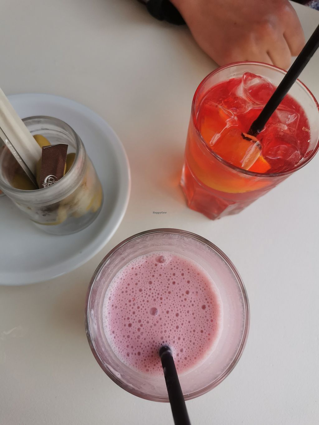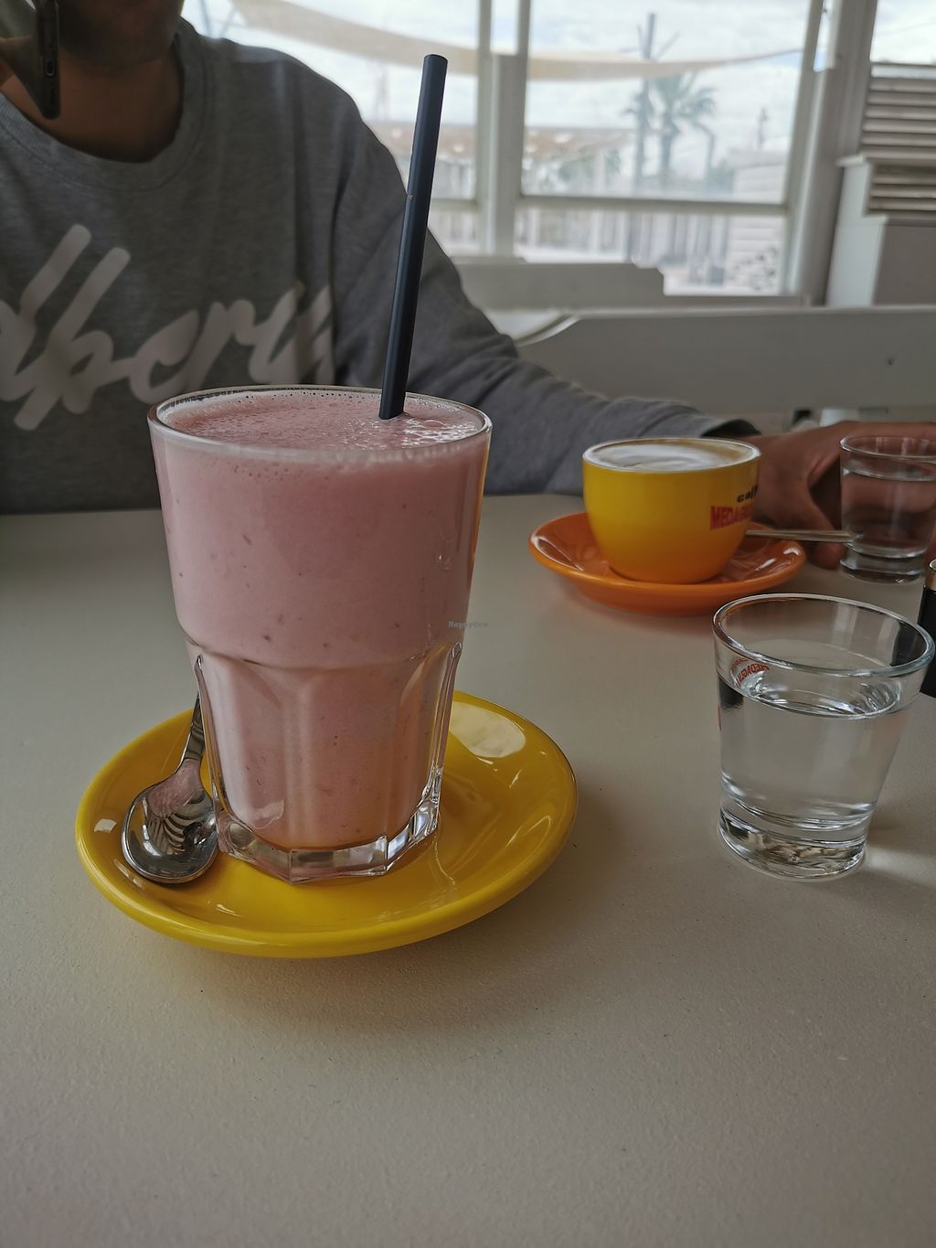 They offer smoothies with soy milk. I had two with fresh strawberries and they were very tasty. 🍓😋