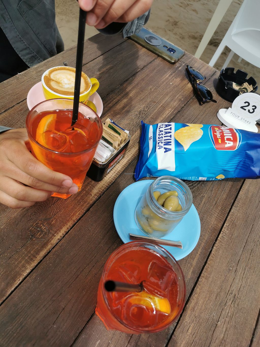Serves meat, vegan options available. Italian beach café serving typical Italian dishes. Offers a small vegan selection that includes grilled vegetables with hummus, vegan poke bowl and mixed salad. Open Mon 07:00-19:00, Tue-Sun 08:00-00:00.