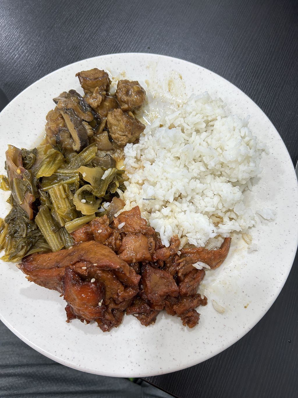 Eenvoudig restaurant, waar ook mockmeat (namaakvlees) wordt geserveerd.