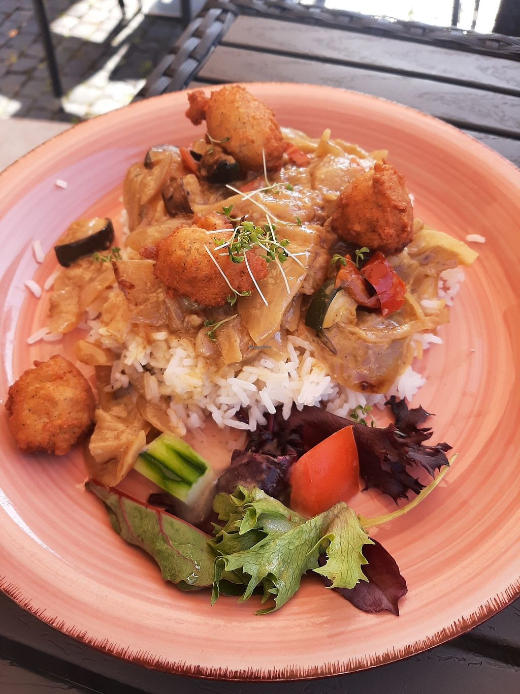 Alle Gerichte sind aich vegan erhältlich und kommen dann mit kleinen veganen Bällchen. Unkompliziert, sehr lecker und sehr freundlich.