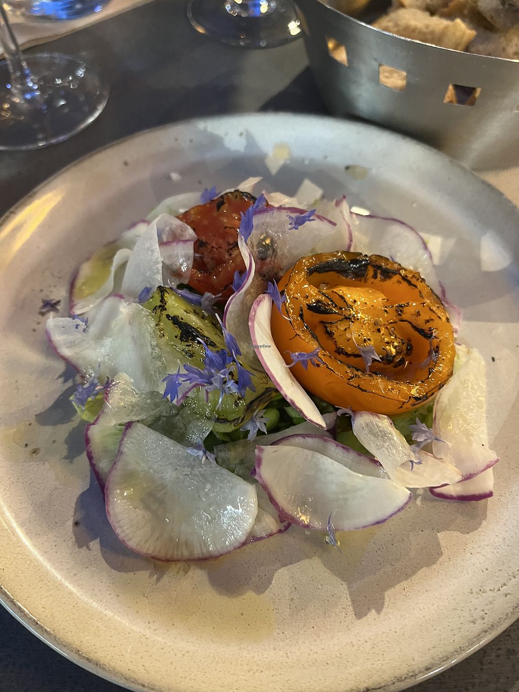 Serves meat, vegan options available. Hip restaurant offering typical French Formule (entrée, main and dessert) with vegan options on request. Menu changes often., Grilled vegetables