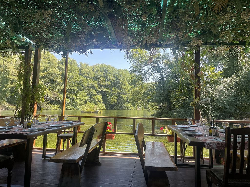 The setting is gorgeous, with a terrace available floating on the springs - we were lucky to get seated here (although there seems to be lots of seating available outside and inside). Menu isn’t great for vegans but we were told the vegetarian meal was vegan. It came with different roasted veg, including mushrooms, aubergine, potatoes, broccoli and some rice. The veg was seasoned well. Portion wasn’t huge (I’d have loved more potatoes) but vegan options seemed very limited in the area so we were just glad to have something. Really enjoyed the location.