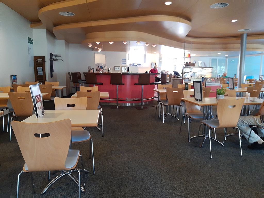 There's only one vegan option now and the quality of the interior is outdated. It's has the atmosphere of a swimming pool restaurant - literally, because there's a certain smell of chlorine from the the adjacent spa. Note that it's in the upper floor but I'd assume there's an elevator.
