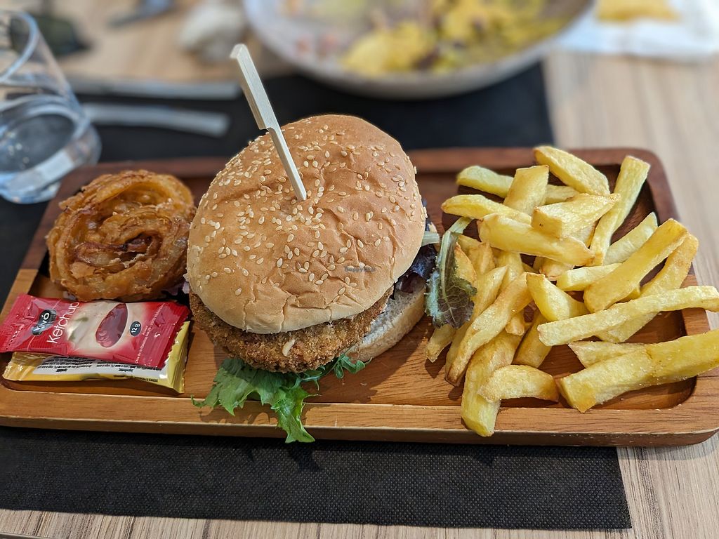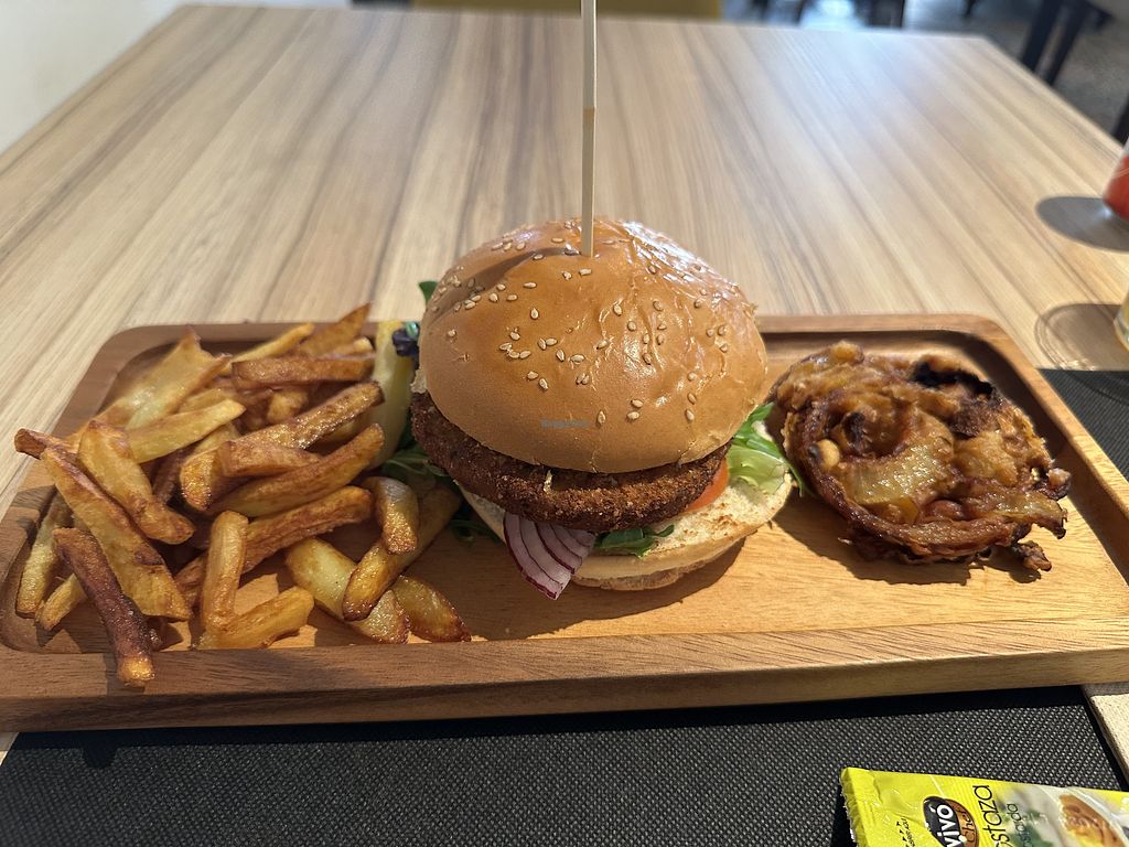 Ok burger but too expensive for a very basic meal. Also I have doubts if the brioche bun for the „vegan“ burger was actually vegan - brioche traditionally isn‘t, and it didn‘t taste vegan to me. Maybe ask them before to make sure.