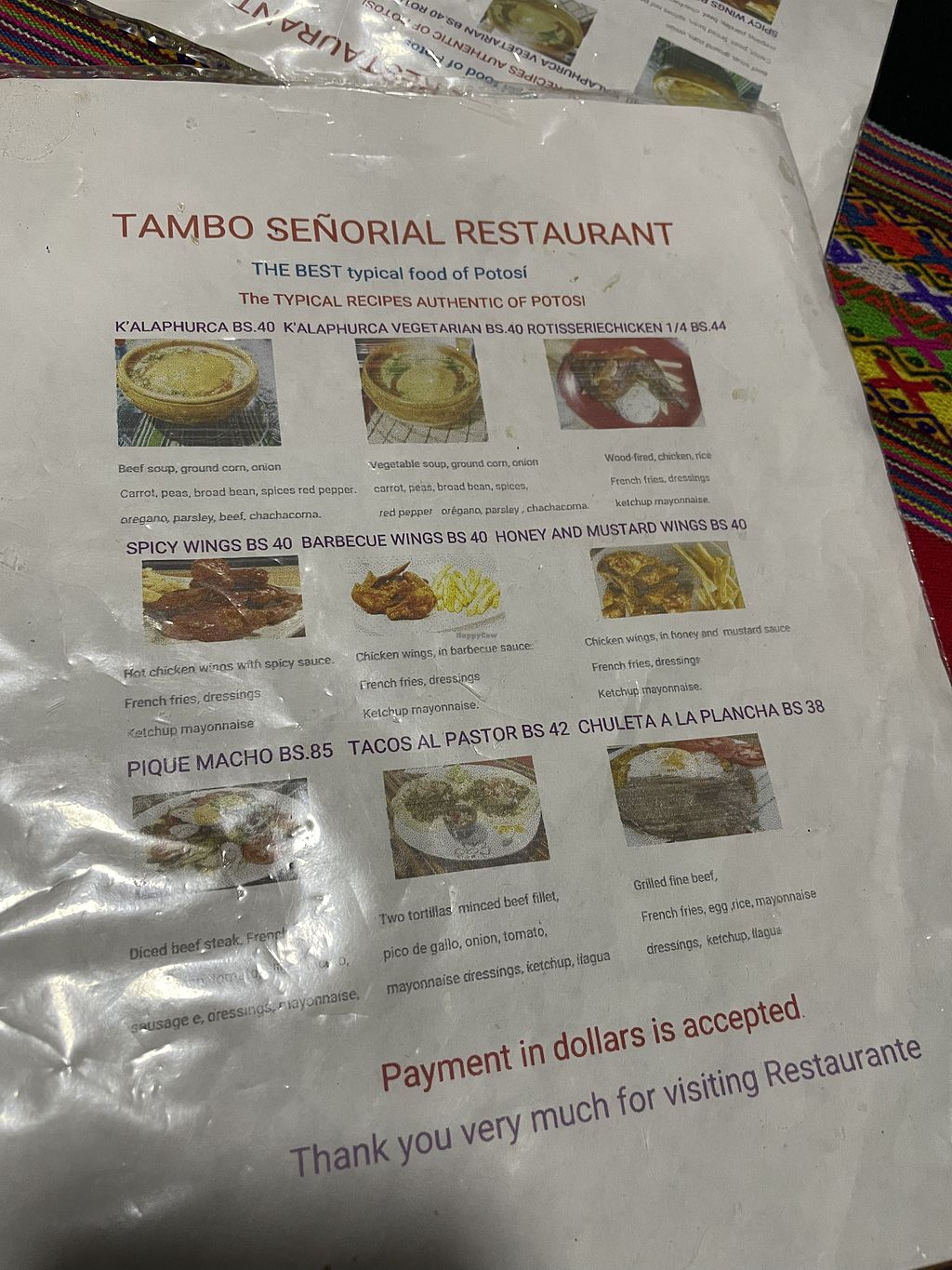 Cons: Expensive at 39bs. All 9 menu items cost the same.