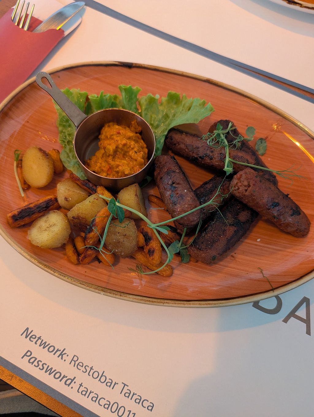 Vegan cevapi with avjar and roasted vegetables