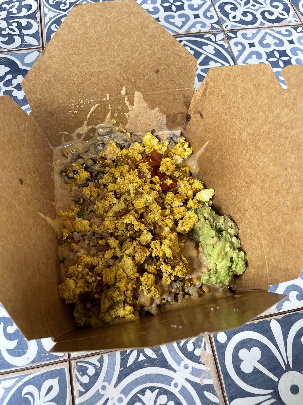 I had the Huevos Rancheros (Tofu) wrap. So the main thing about it is that the huevos should have a lot of salsa on top.