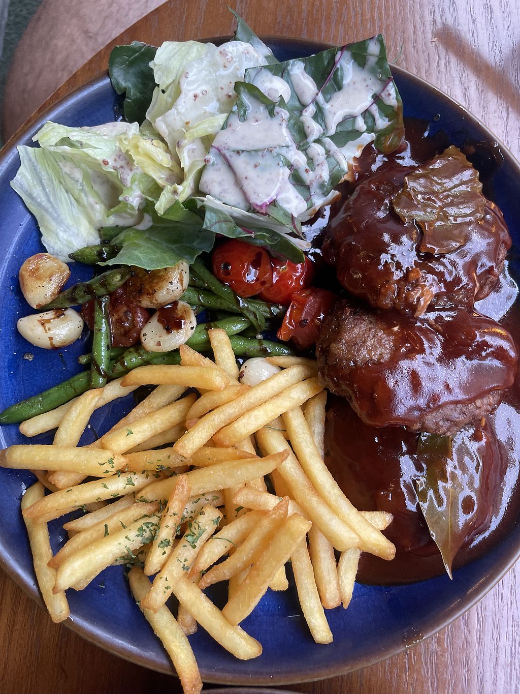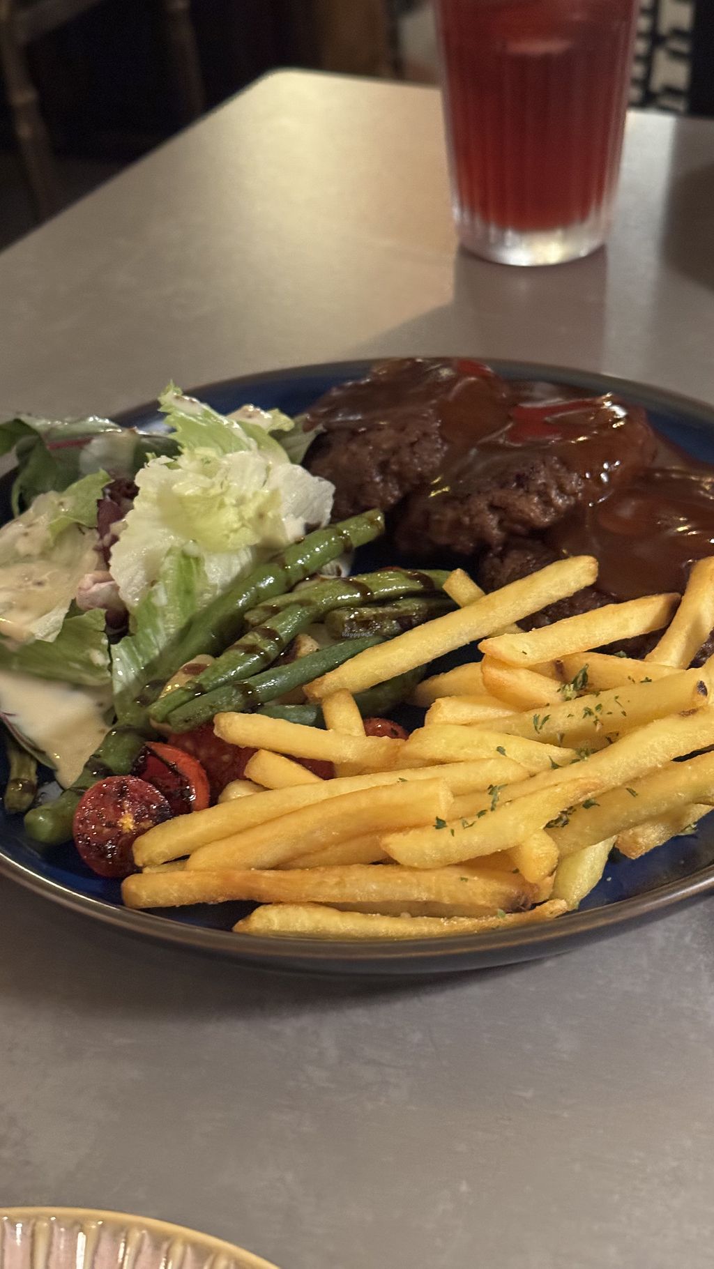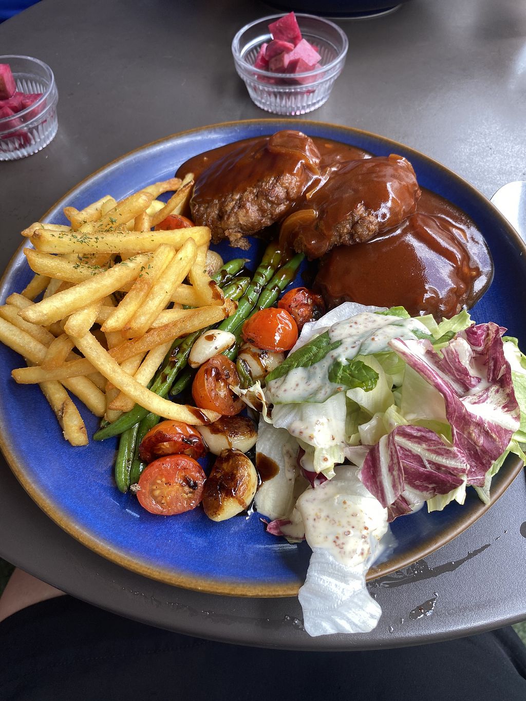 This was the first time I’ve had anything like this - hamburger steak meal with veges, fries and salad. I wasn’t sure if I’d like the hamburger steaks, but I did. Big meal, and all the sides were yum too. We sat outside so I didn’t actually see what the inside was like but my friend bought so me vegan biscuits and chocolate so there’s at least a few grocery items to take home too.