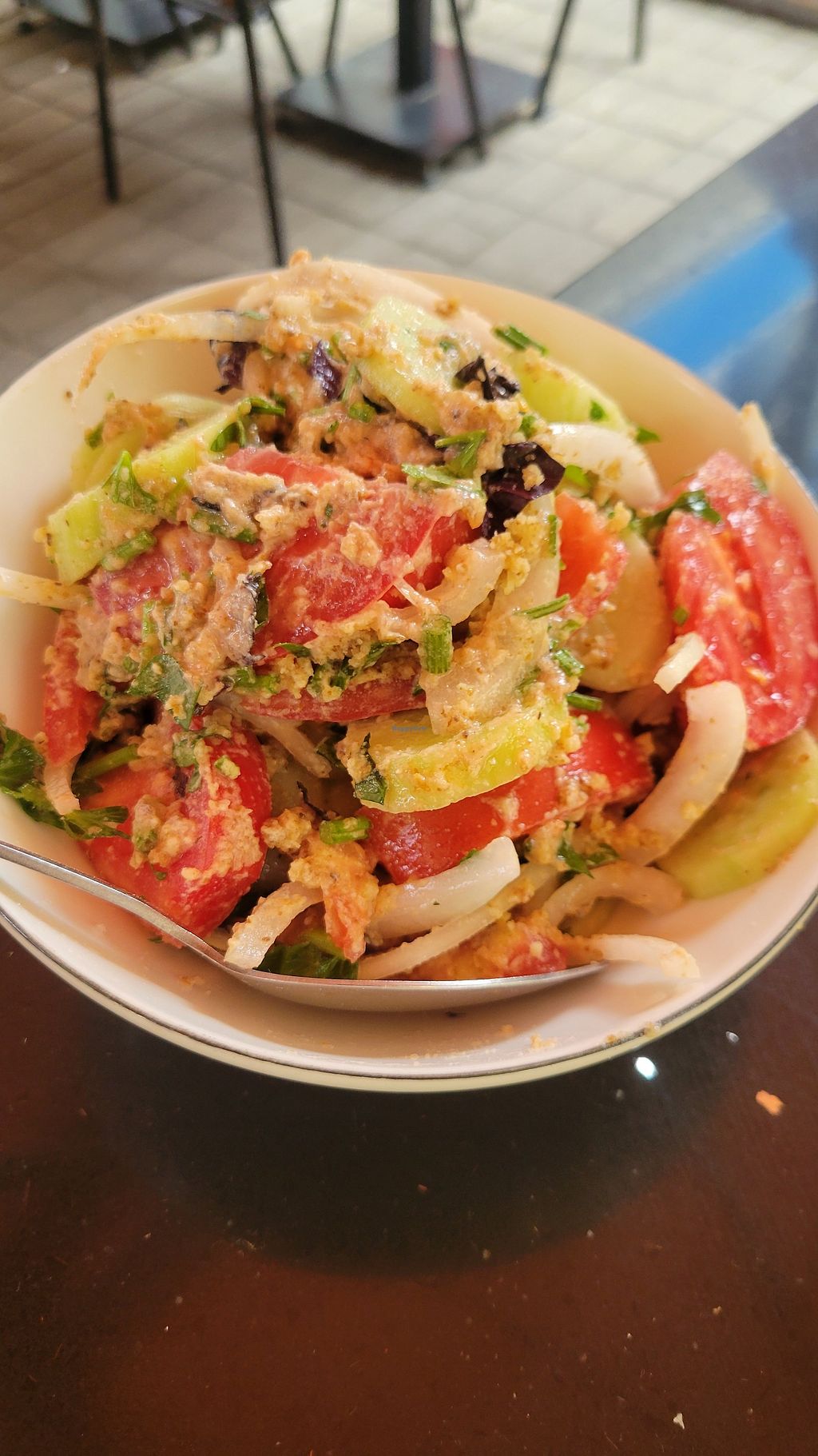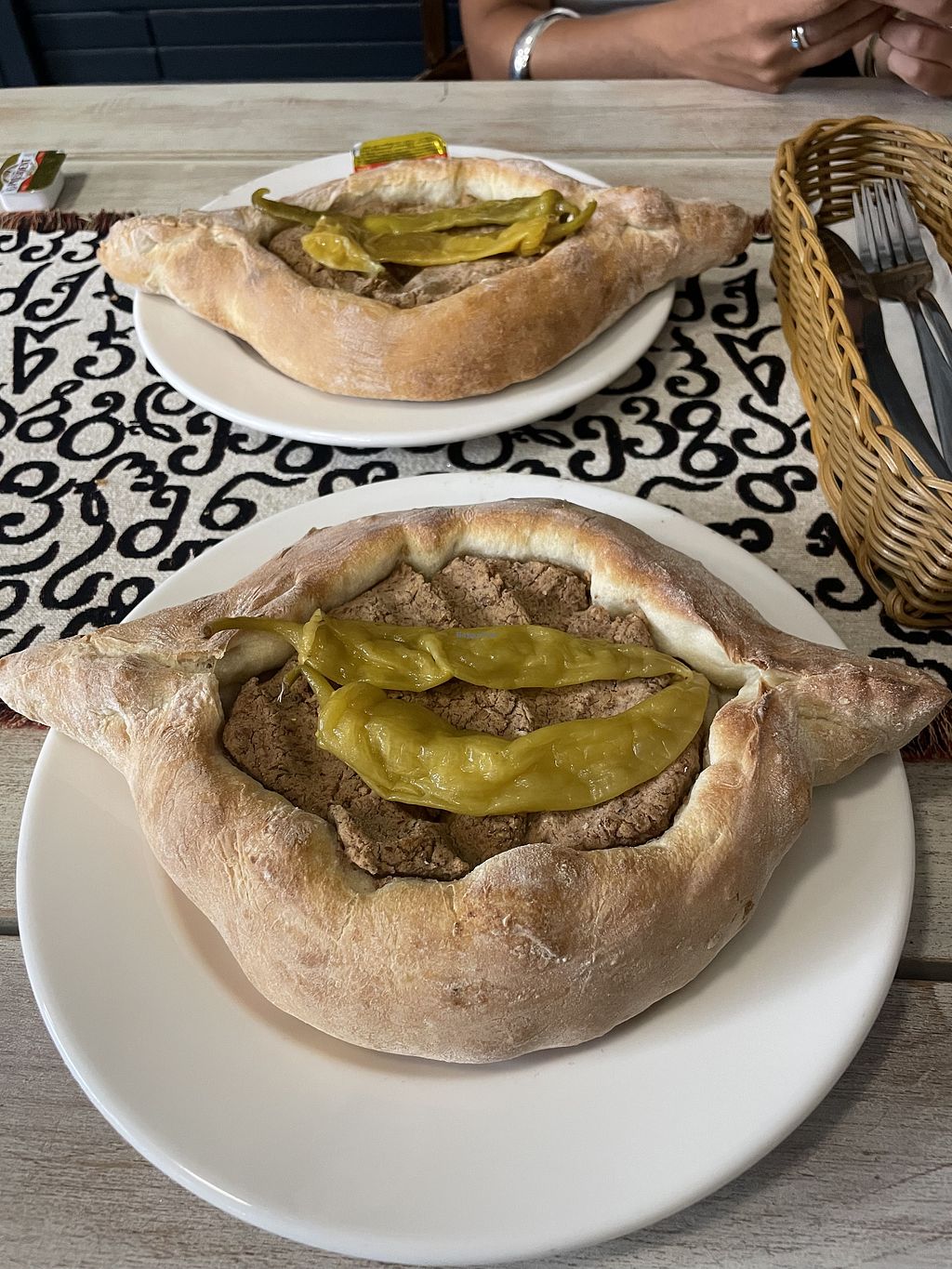 I asked about vegan options and the waiter only mentioned the mushroom filled bread. I wanted to try it anyway, so for me that was fine. Bean filled one was not available. Portion was quite big. But super nice to try and also a busy place! Would recommend😄