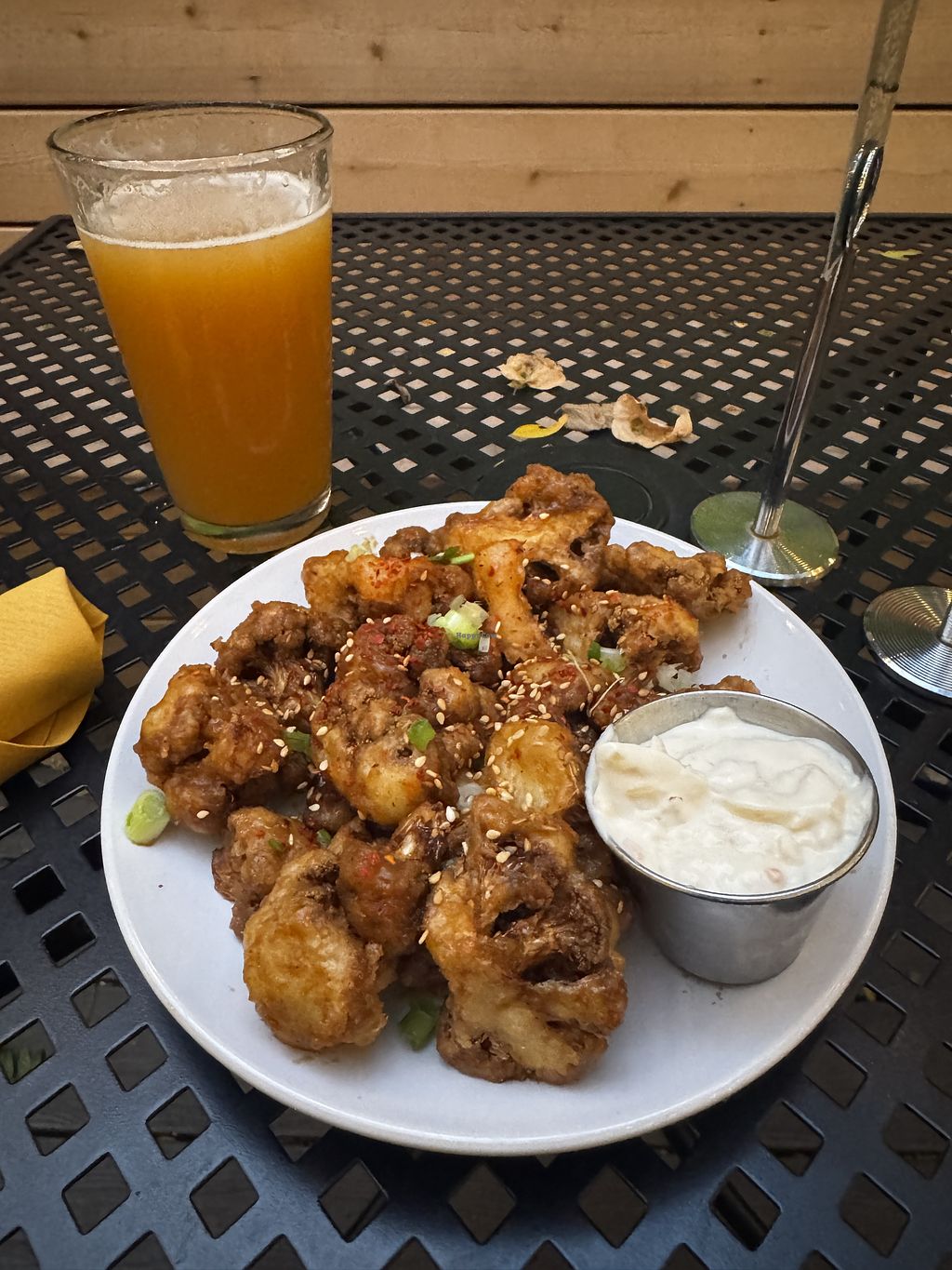 We enjoyed the atmosphere a lot, very cute and friendly. We had the bulgogi cauliflower, the Nashville chicken, and the Cuban. Well seasoned, though fried items were quite greasy. Wedge fries were super creamy.