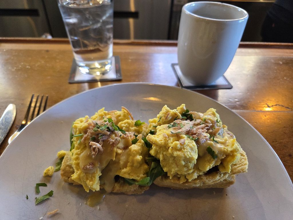 Bright, airy vibe. Hopping busy, but got a seat easily and food was quick. Had the vegan eggs Benedict on a biscuit. Fantastic flavor and texture.