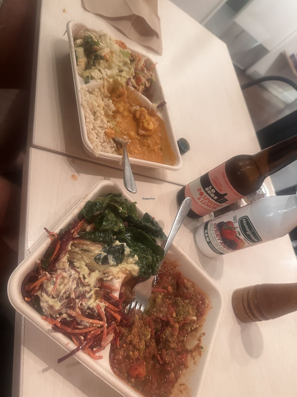 I got the hot box deal with the Dahl, rice, potato salad, and Vietnamese 'not-chicken' salad. All was really good and you get a good amount of each. The complimentary pea hummus was also very good. Only way to improve would be reusable trays rather than single use trays and cutlery, but other than that it was great. Love that everything is vegan so no need to worry about ingredients! All ingredients are also clearly labelled.