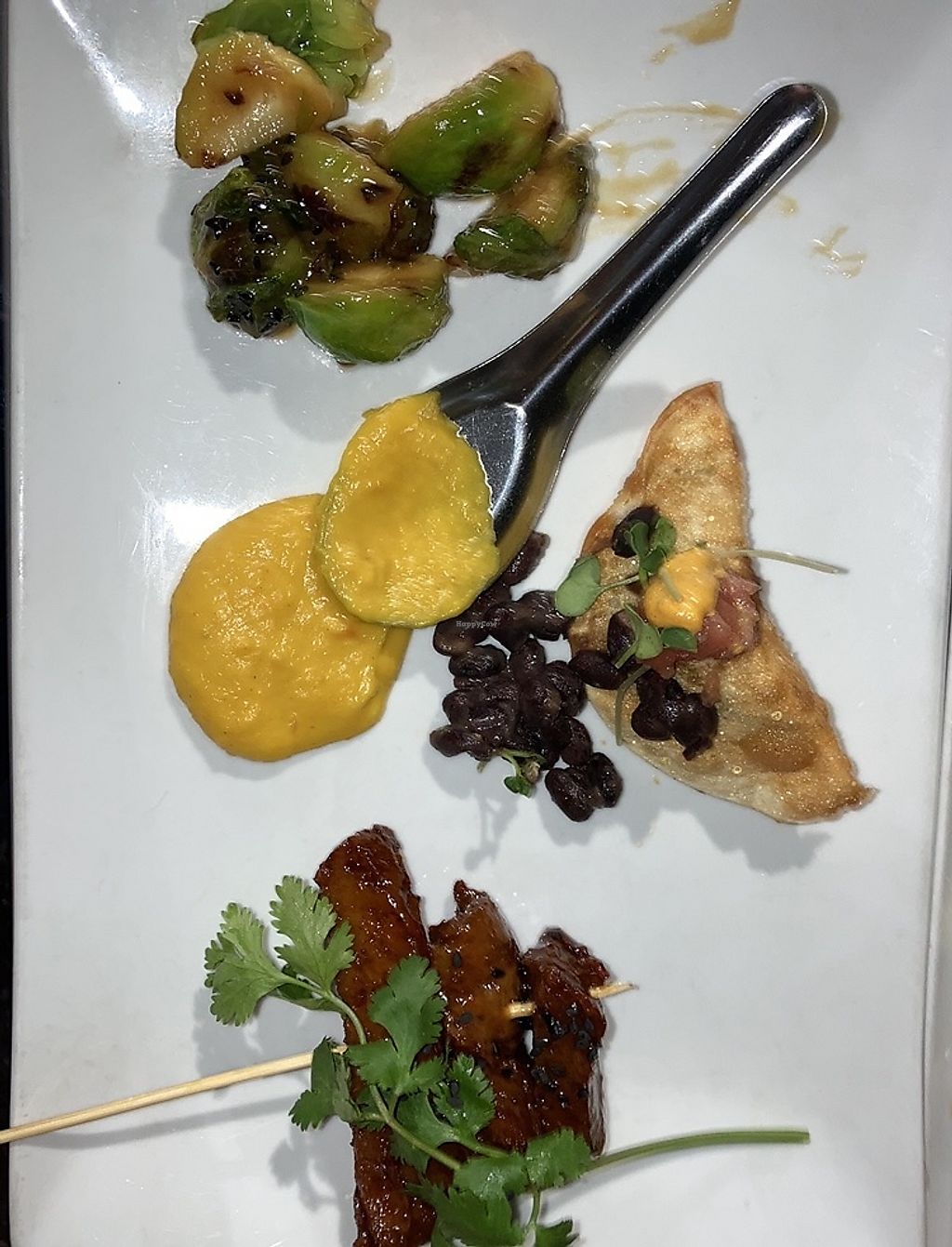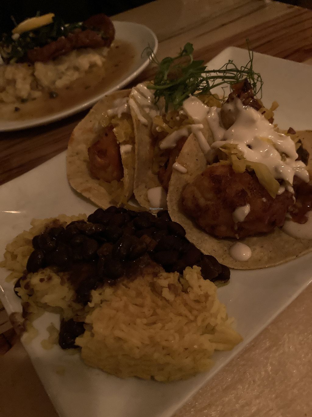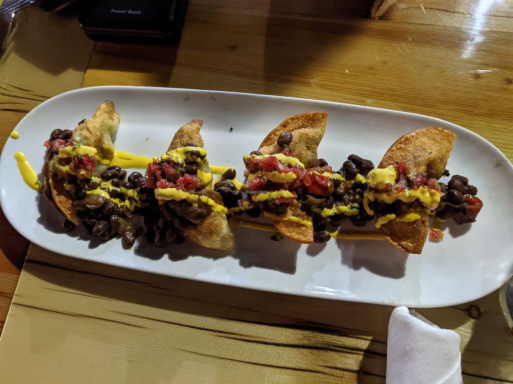 Oyster mushroom ceviche, Nachos, and noodle dish.