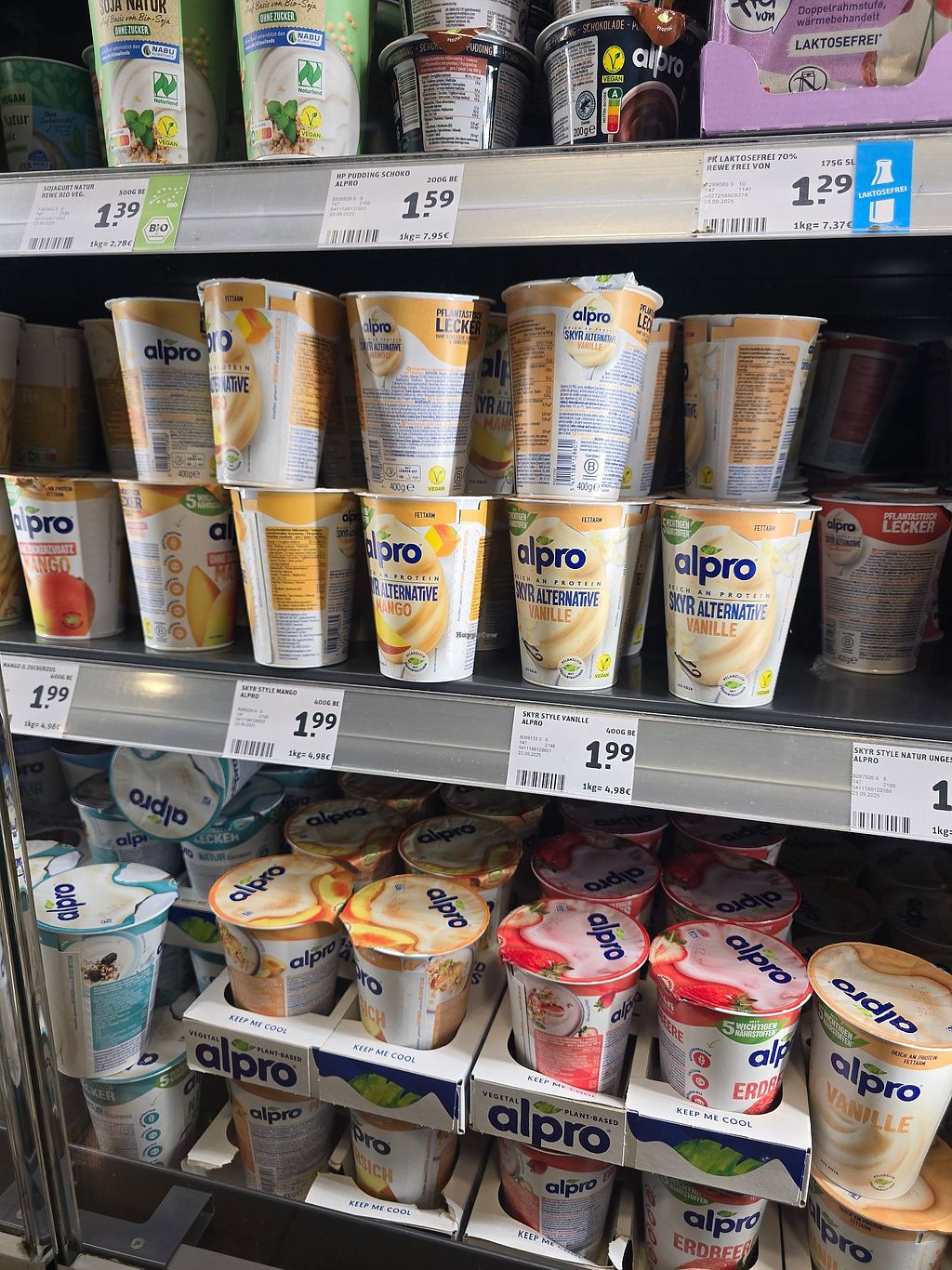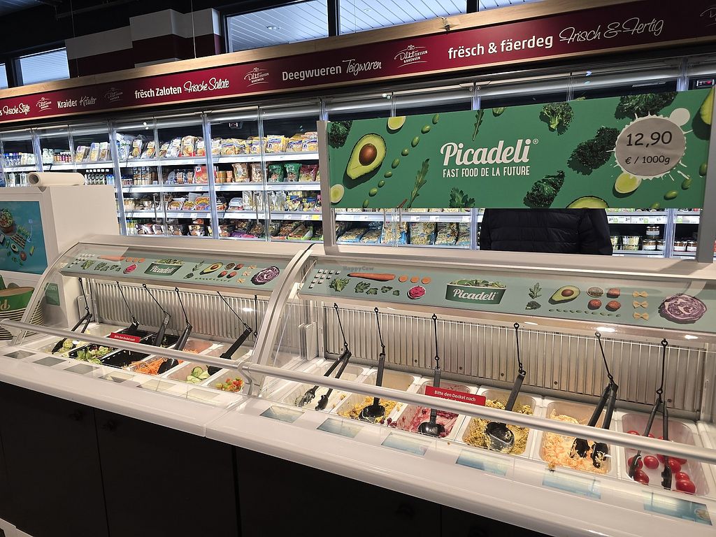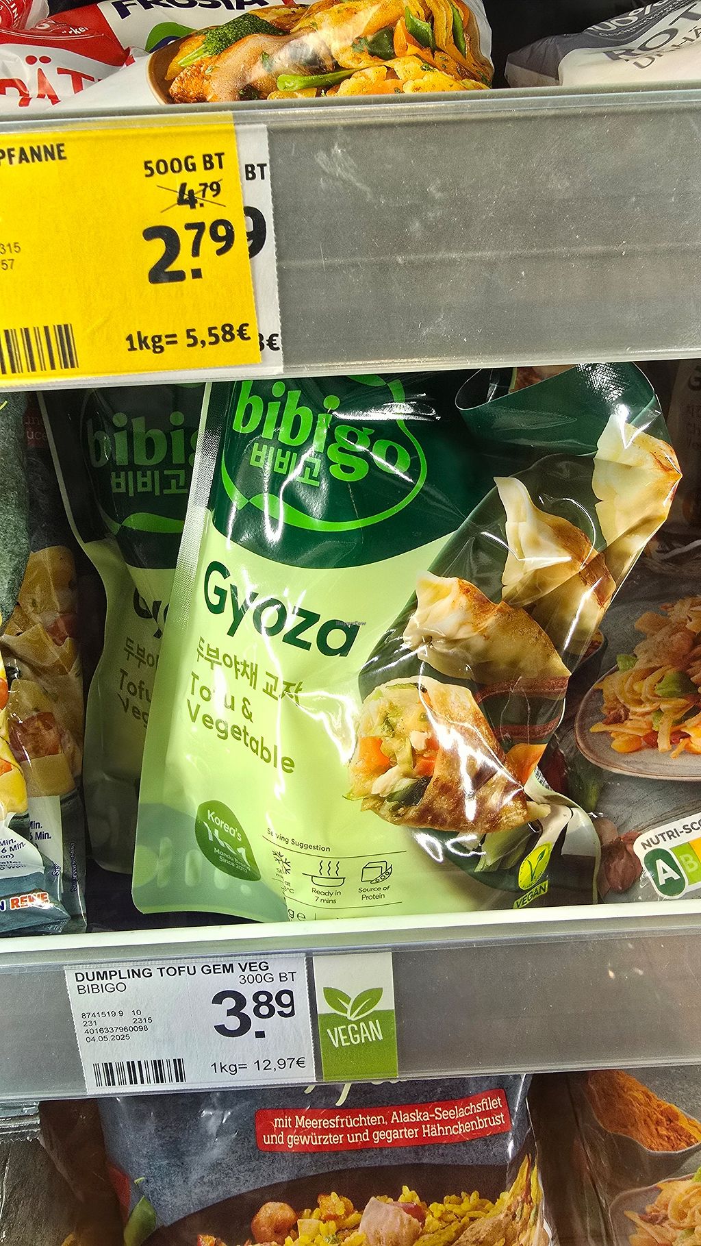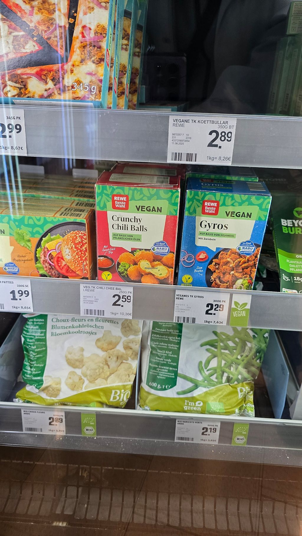 Grocery chain from Germany. Product range include various vegan products. The prepared foods stand by the entrance has vegan foods for takeaway like veggie sushi, gyoza, and sandwiches. Open Mon-Fri 08:00-20:00, Sat 08:00-19:00, Sun 08:00-18:00.