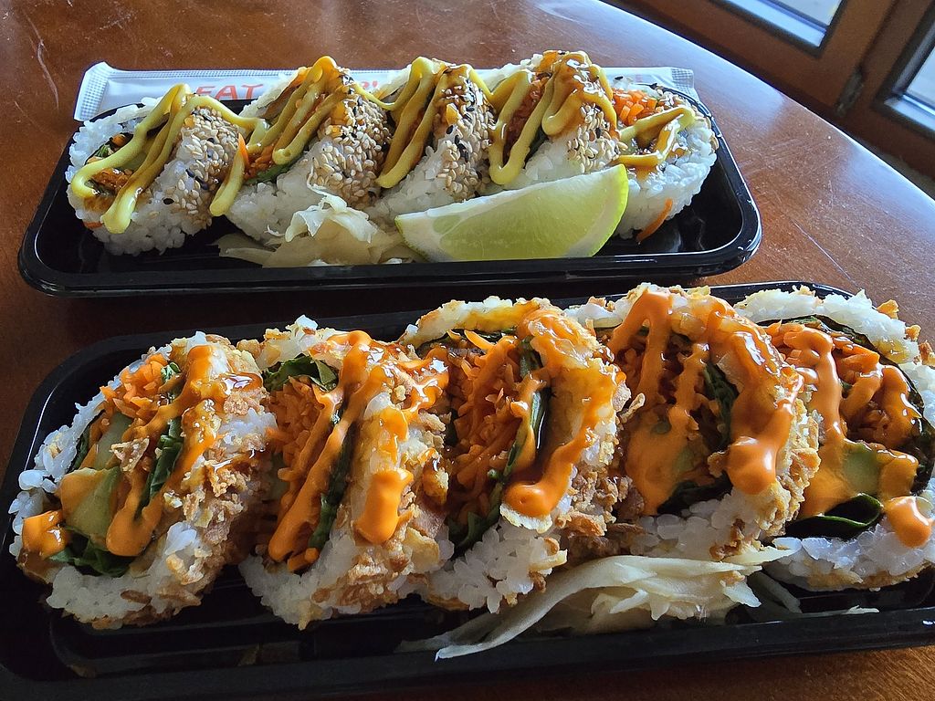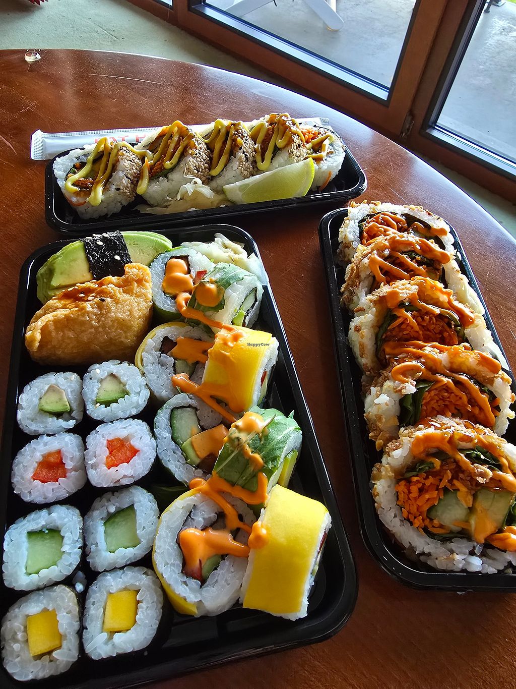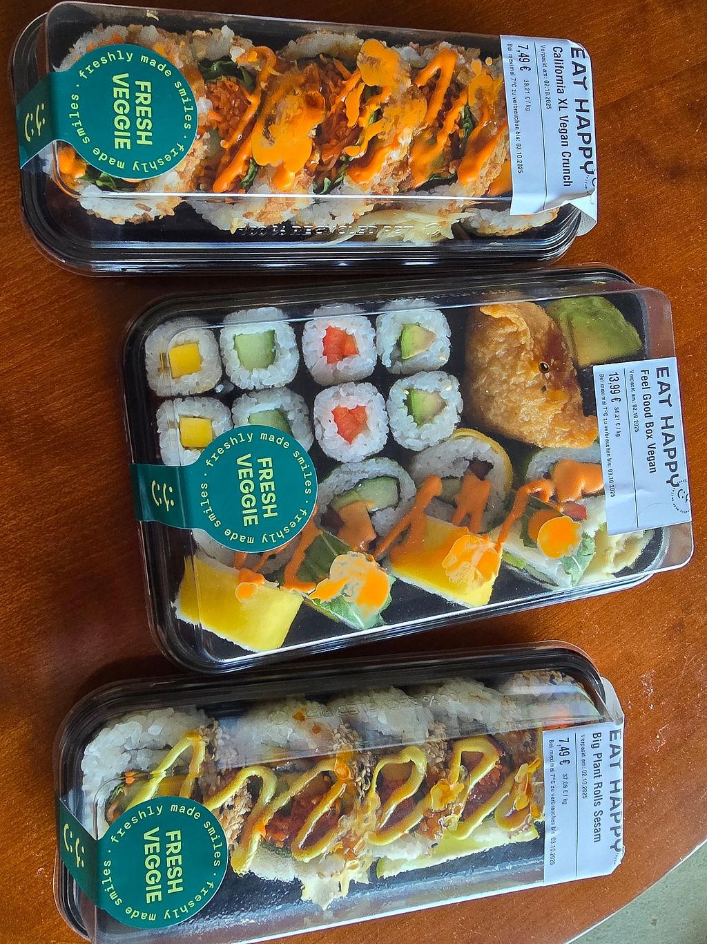 Theres a sushi stand that has several vegan sushi boxes. We had some as take away for dinner. Its basically sticky rice with vegs and seaweed. Would love to see them with tofu or such.