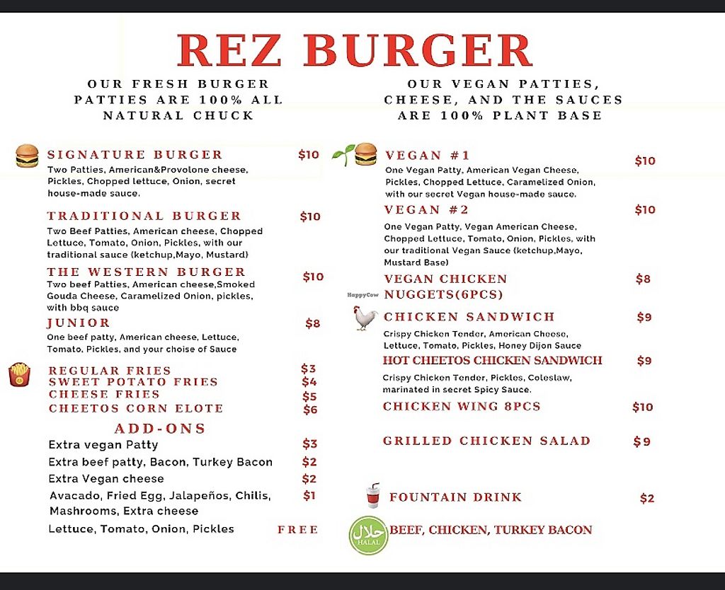 So glad we tried Rez Burger tonight! My husband and I each tried one of the two vegan burgers on the menu and they were both great! The sweet potato fries were the best I've ever had! So crispy on the outside and fluffy on the inside. We will definitely be back!