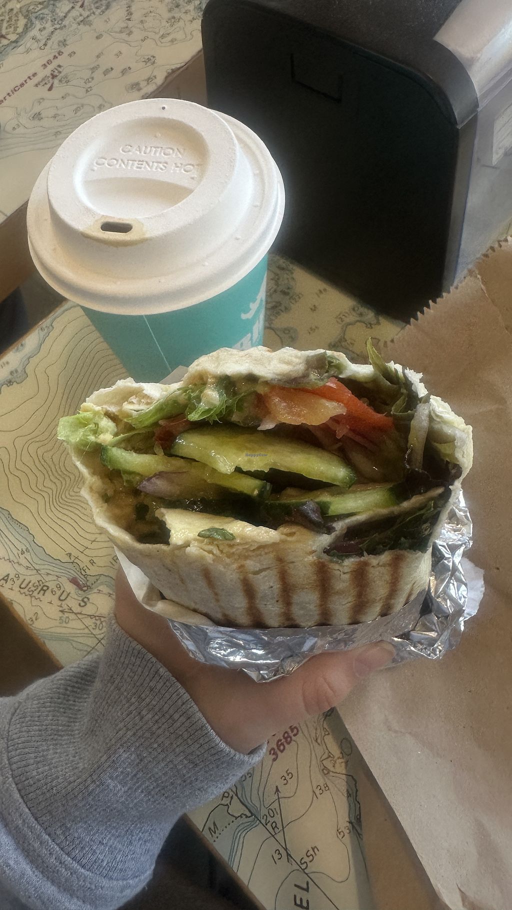 We went for coffee and were happy to see a vegan wrap in the menu. But we were happily surprised when seeing a vegan jelly filled donut!