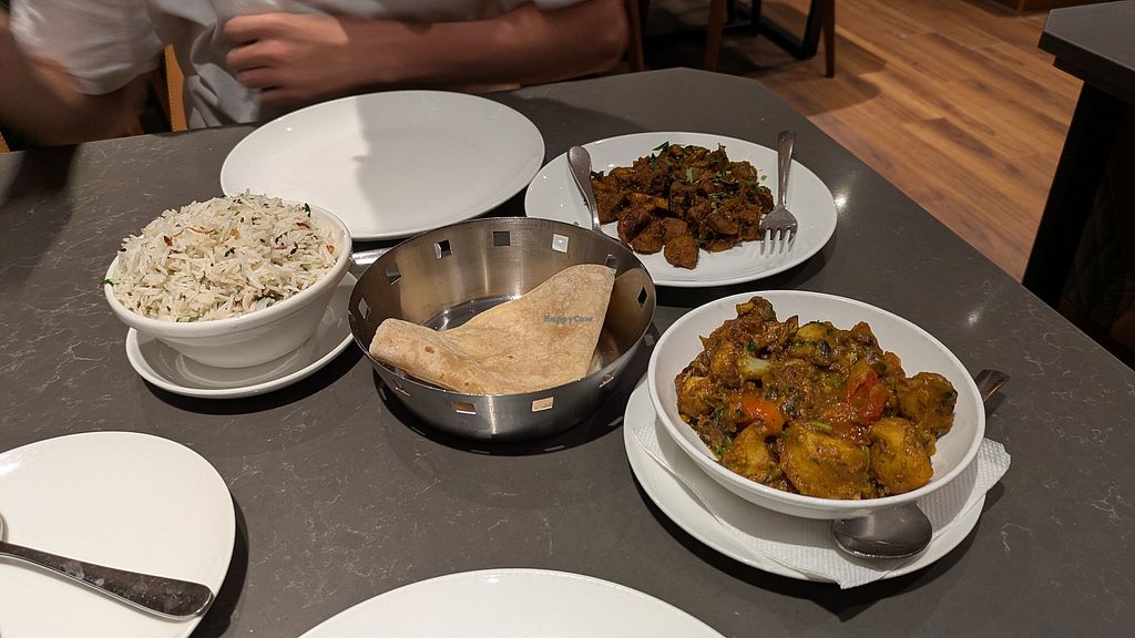 Found soya protein on their menu which was amazing! The aloo Gobi is also good and the rice / chapati. They have thali's for lunch and they don't serve dosa at lunch, like other places! There is AC, which makes a huge difference in the heat! Staff are also nice!