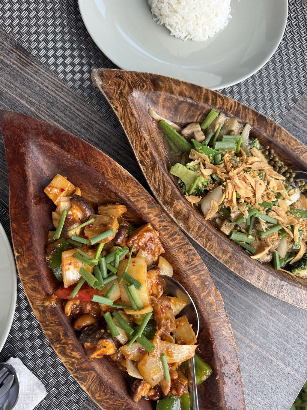 Cashew stir fry with mock duck and black pepper stirfry with mock chic…