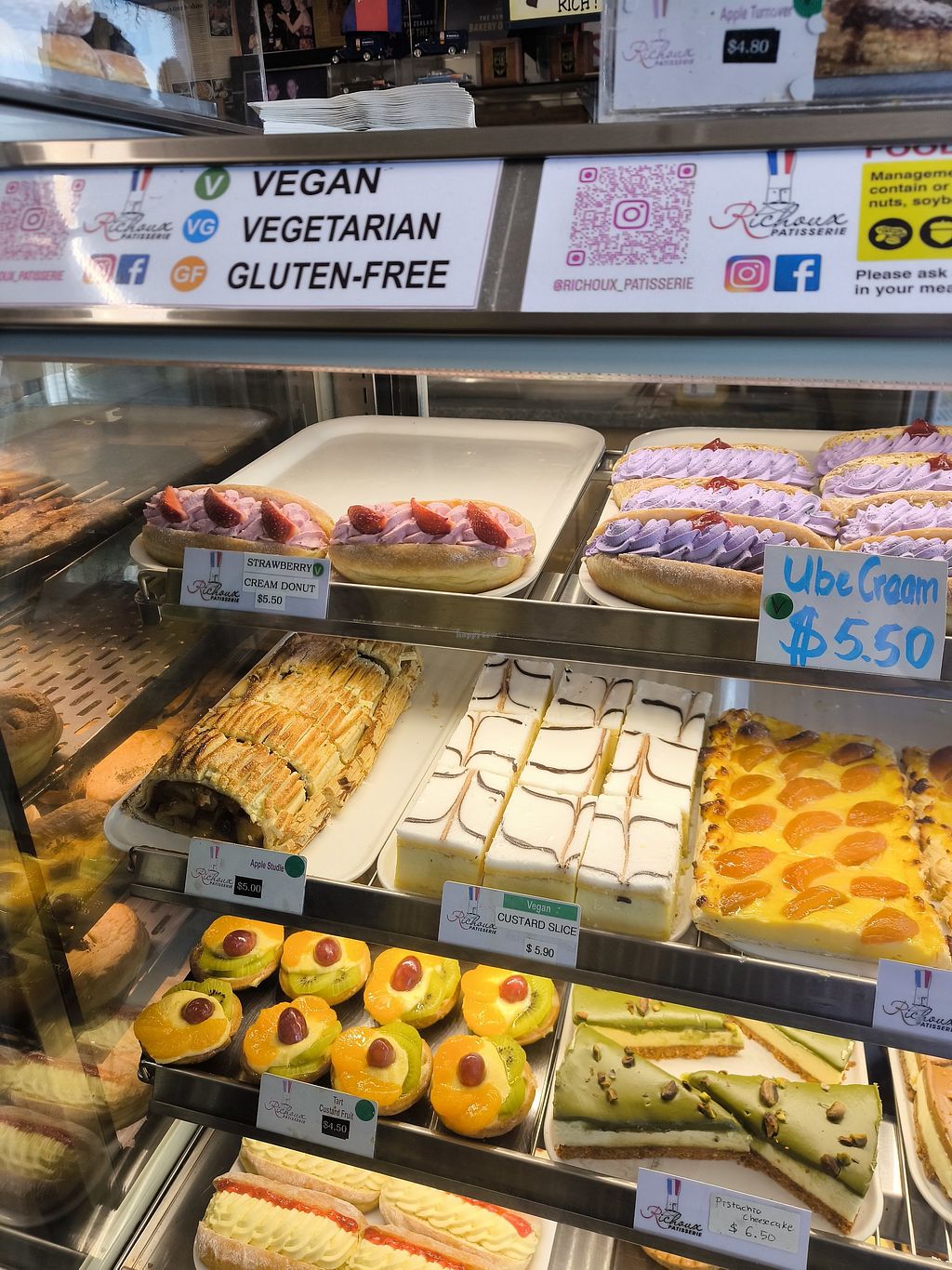 The whole top row of the cabinet is vegan pies, so many flavours inclu…
