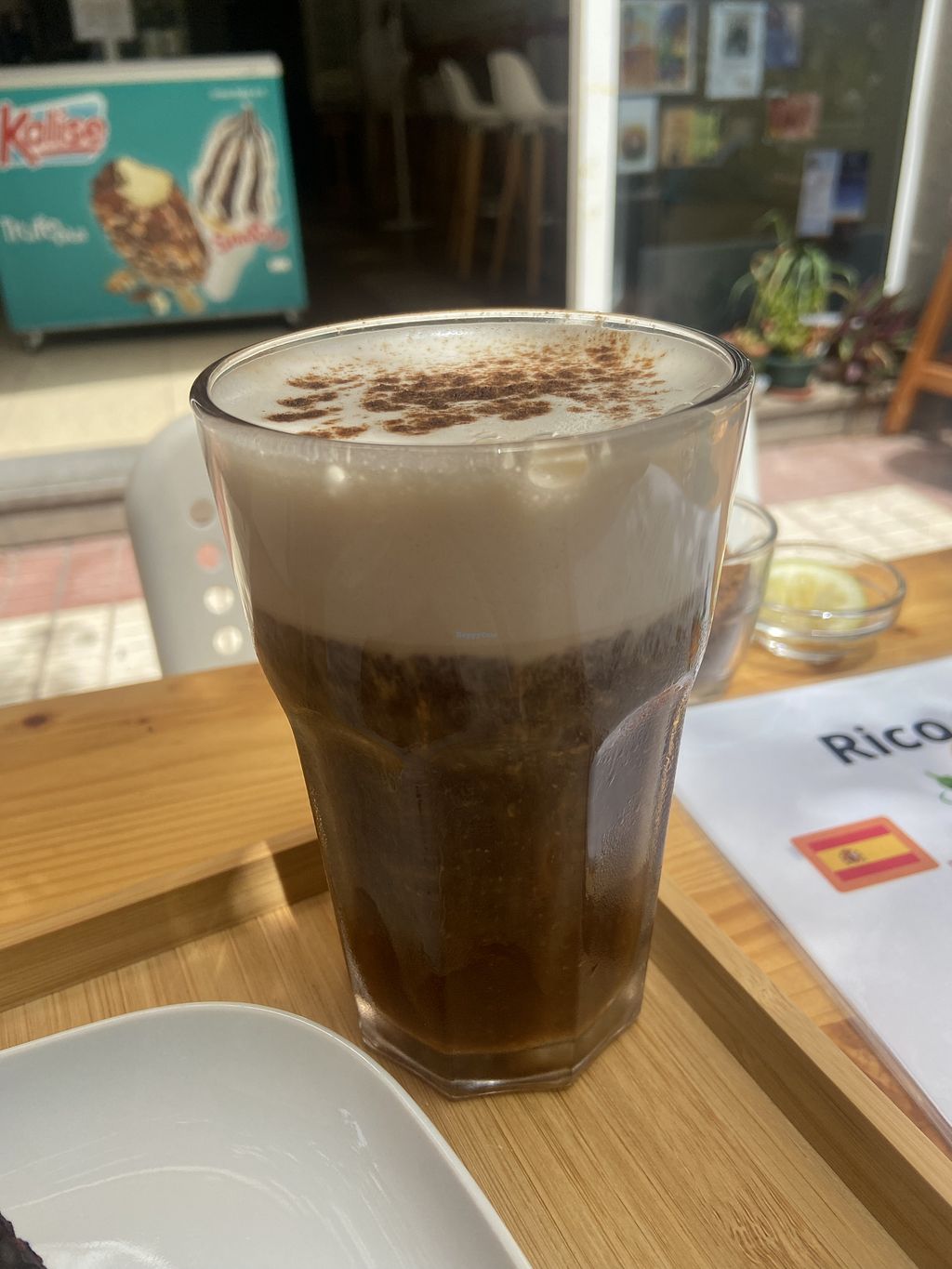 Great service, nice location and views of the sea from a lovely terrace. Offers sandwiches, wraps, salad and gazpacho. The server was fantastic and spoke English, German and Spanish. Also has some vegan desserts and milk for coffees.