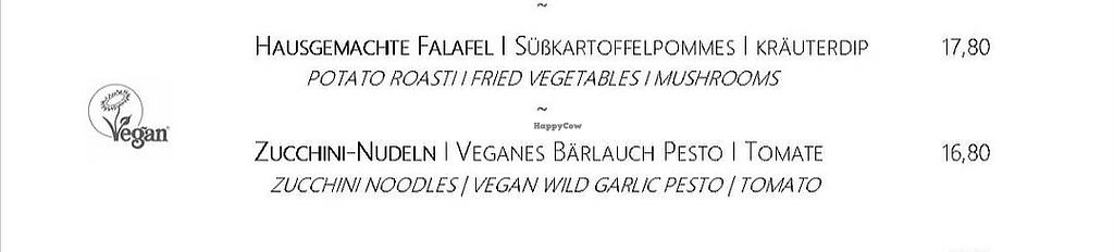 Serves meat, vegan options available. German restaurant offering vegan falafel with bulgur, mushroom, and potato veggie rosti. Open Tue-Sat 17:00-23:00.