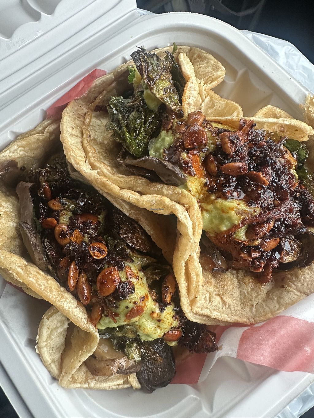 They have lots of vegan options on the menu. We ordered the vegan tacos and nachos after seeing other reviews, and they were really good, loaded with veggies and great flavor. The tacos are super filling and you feel full pretty quickly.