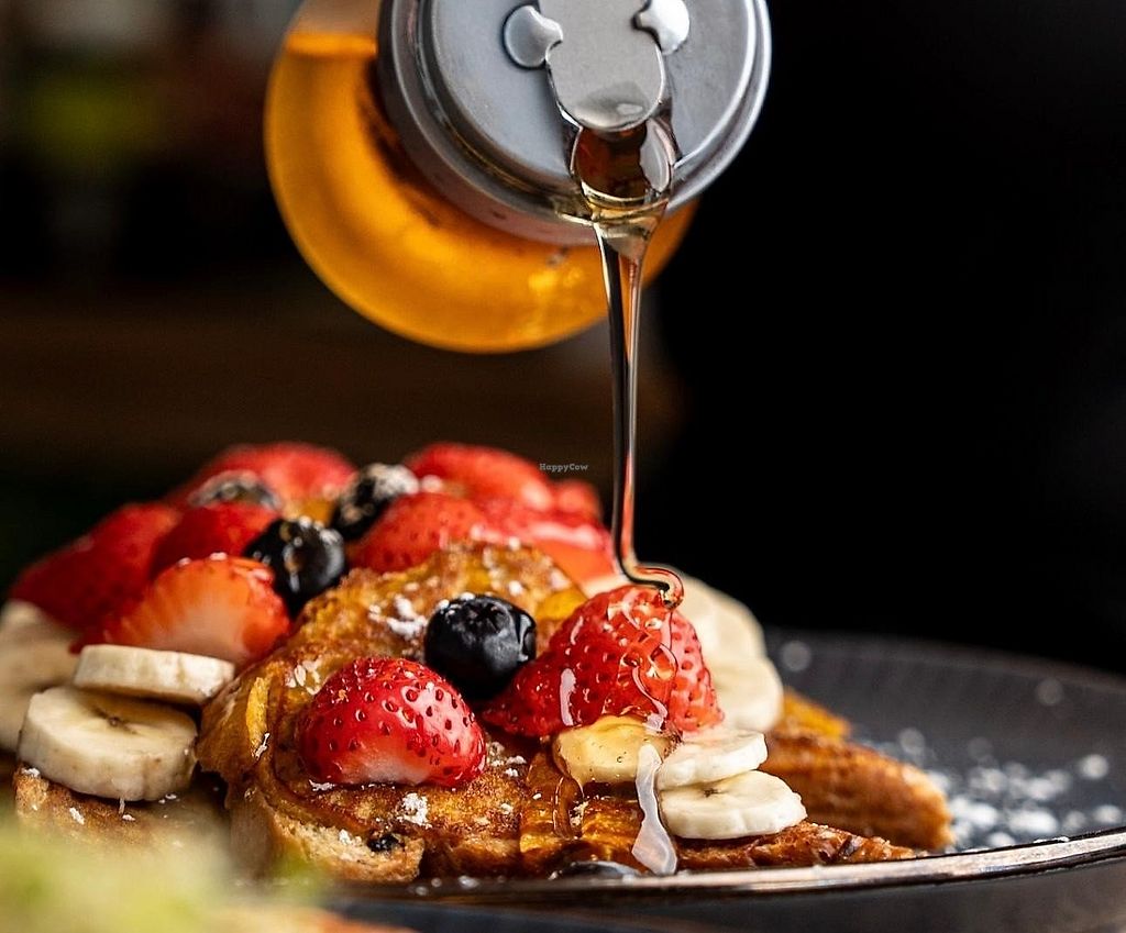 Vegan restaurant serving breakfast and lunch dishes such as pancakes, scrambled tofu, burgers, burritos, French toasts, and mofongo.