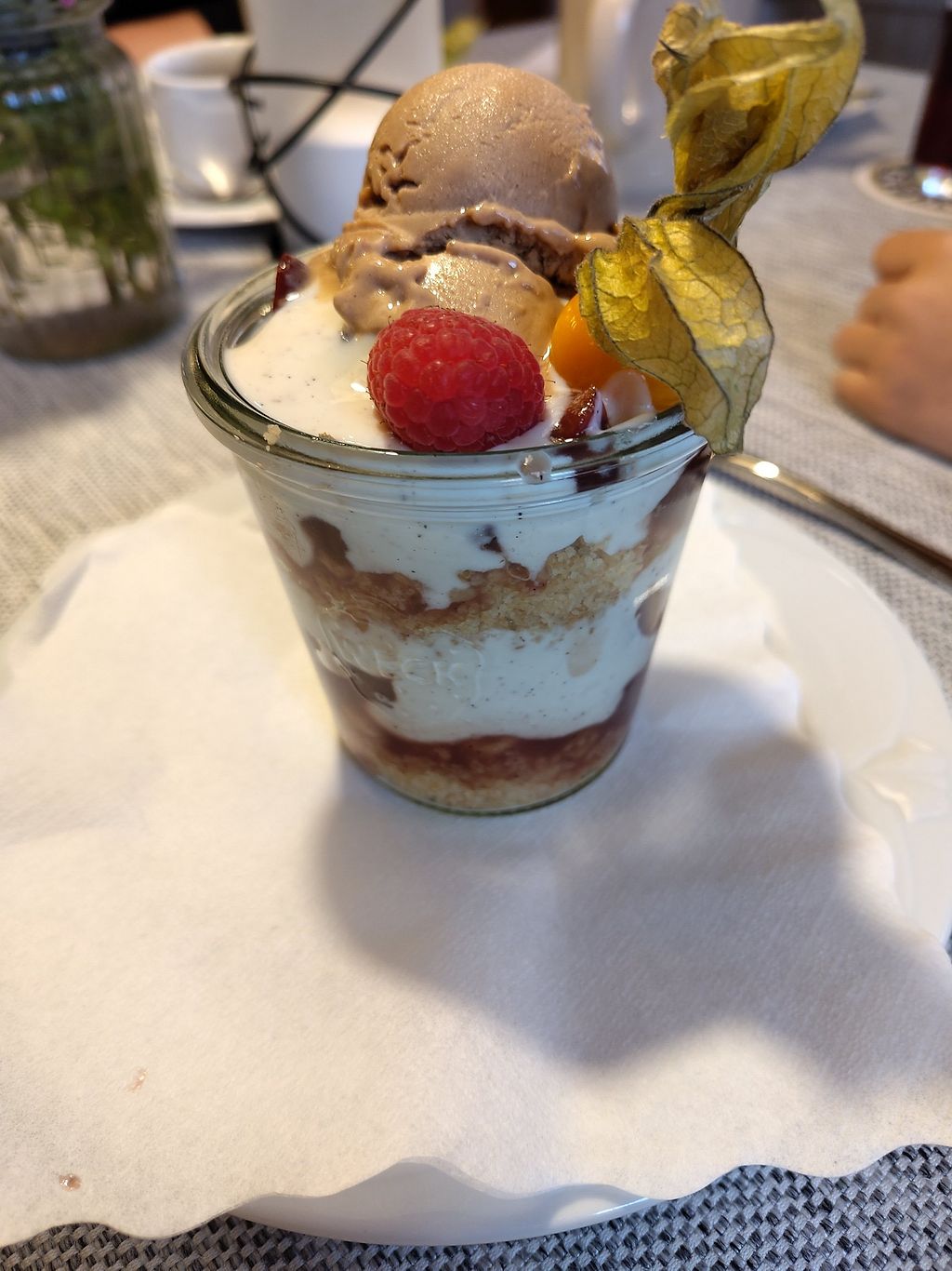 Raspberry-Pancakes with coconut-creme and wood-berrys and icecream - a…